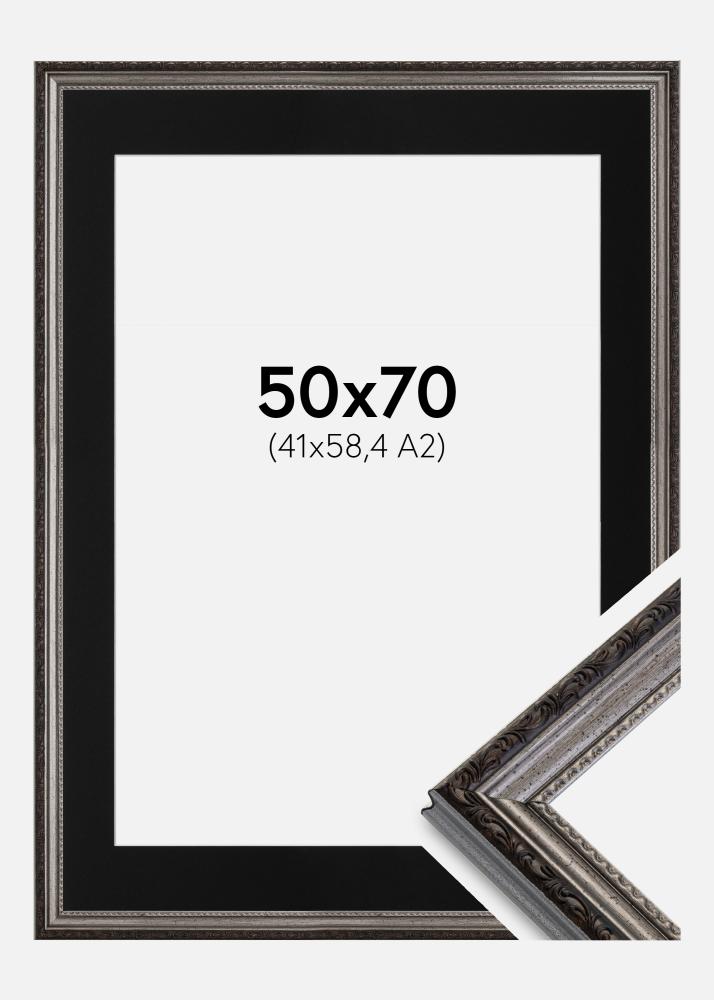Ram Abisko Silver 50x70 cm - Passepartout Svart 42x59,4 cm (A2)
