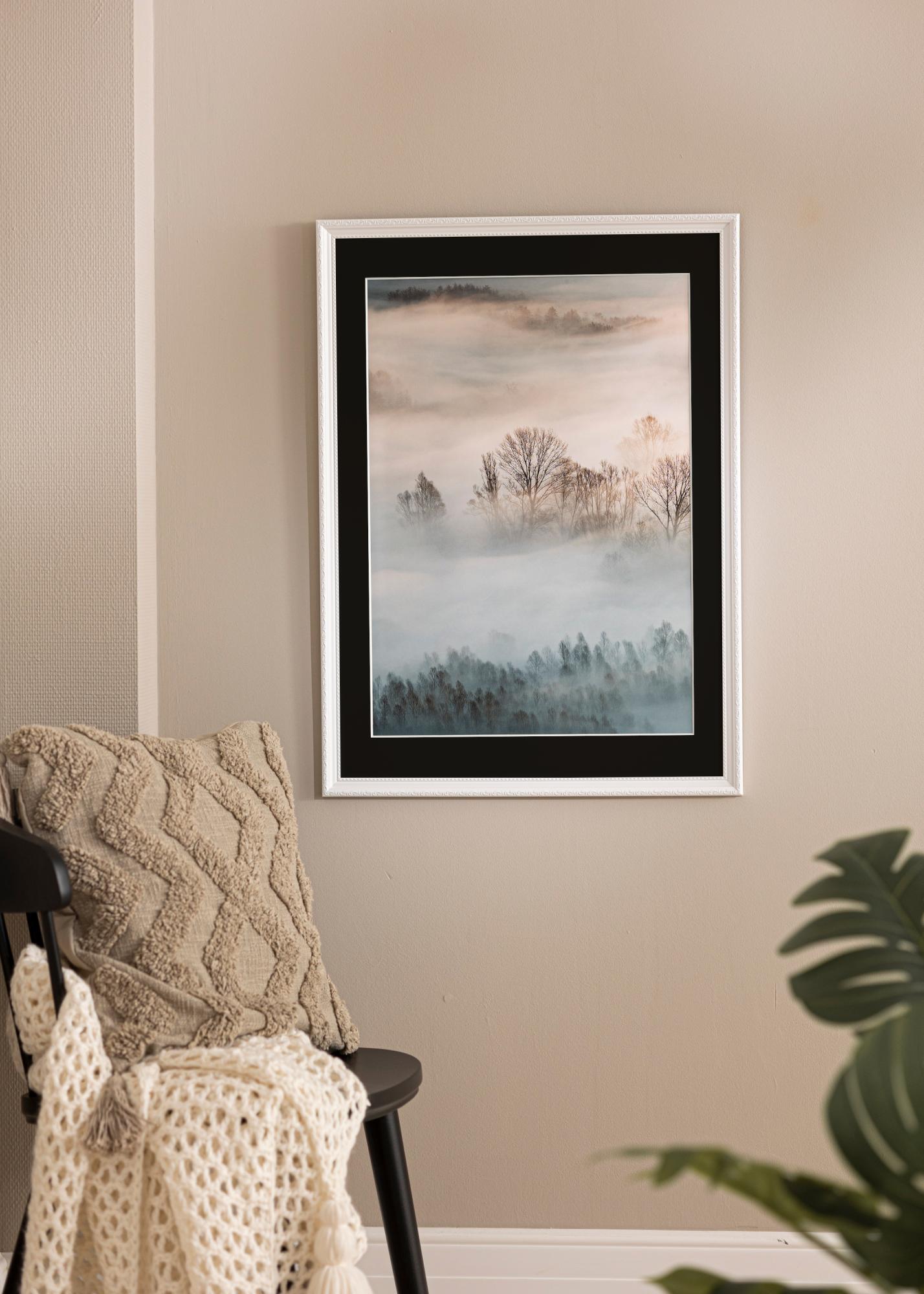 Med sin matta finish och tidlösa design är denna ram med passepartout ett utmärkt val för att visa upp allt från familjefoton till konsttryck med en professionell touch. Den svarta passepartouten tillför dessutom en extra dimension av klass och elegans till din inredning.