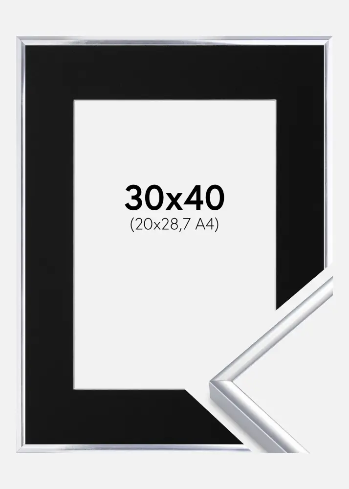 Ram Aluminium Blank Silver 30x40 cm - Passepartout Svart 21x29,7 cm (A4)