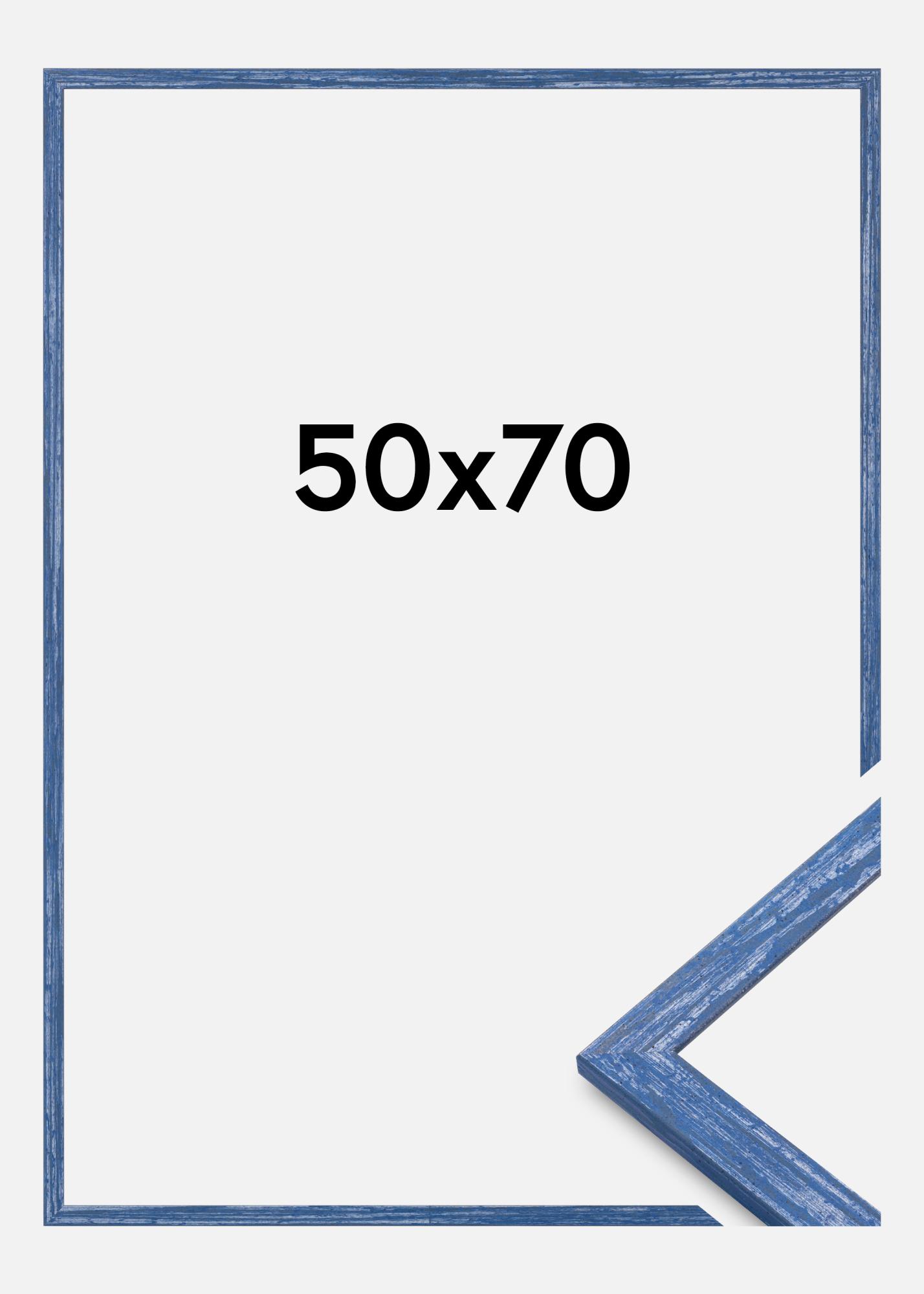 Denna fotoram i storleken 50x70 cm är en perfekt kombination av stil och funktionalitet. Med sin livfulla blå färg och lätt väderbitna finish, ger den en rustik och charmig känsla som passar utmärkt i både moderna och bohemiska interiörer. Trästrukturen är subtilt framträdande genom den blå färgen, vilket skapar ett levande och naturligt uttryck. Denna tavelram är idealisk för att ge en färgklick i ett annars neutralt rum och passar särskilt bra för maritima motiv eller barnrum.
