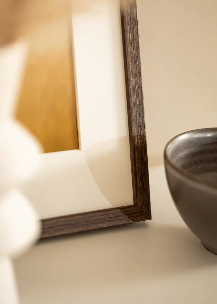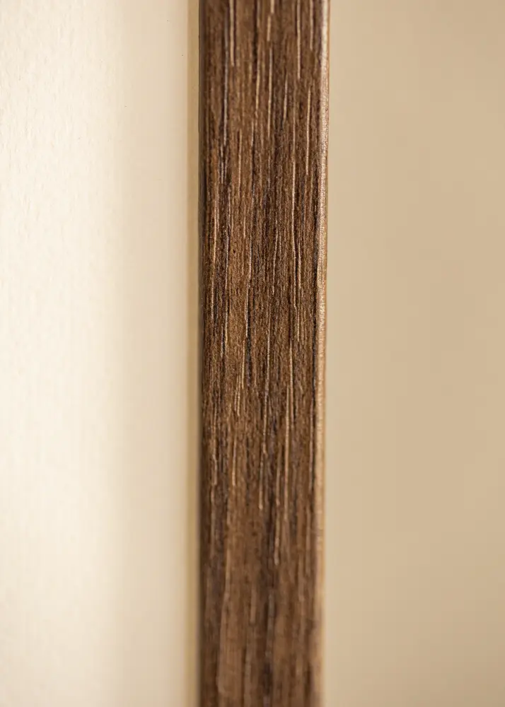 Denna valnötsram finns i flera storlekar, men denna specifika modell mäter 29,7 x 42 cm (A3), vilket gör den perfekt för standardstorlekar på konstverk och certifikat. Oavsett om du vill skapa en konstvägg eller bara sätta upp ditt favoritfoto, är denna ram ett utmärkt val för att visa upp dina minnen med stil.
