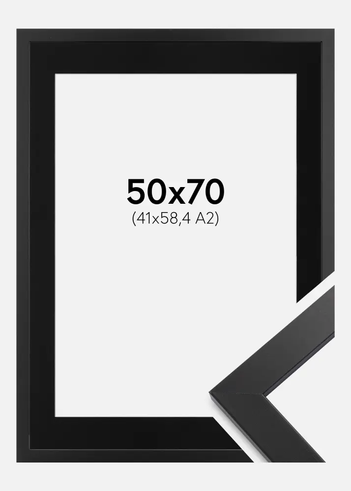 Ram Black Wood 50x70 cm - Passepartout Svart 42x59,4 cm (A2)