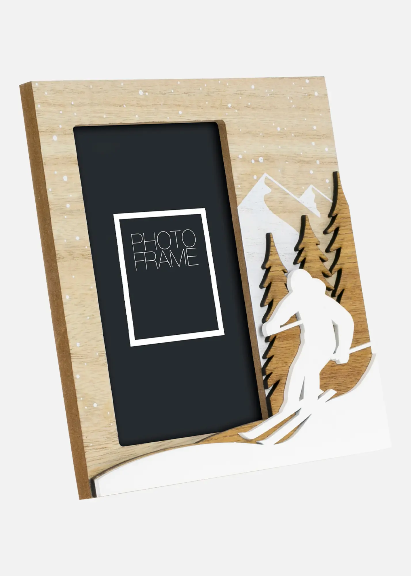 Ge dina naturbilder den inramning de förtjänar med vår unika fotoram med friluftsmotiv. Denna 10x15 cm ram är designad för att framhäva dina utomhusäventyr och skapa en känsla av vildmark i ditt hem. Med sina detaljerade illustrationer av naturelement, blir varje foto en del av ett större landskap.