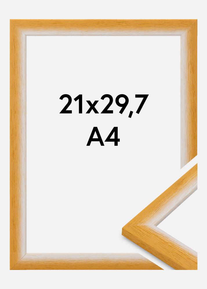 Denna fotoram i storleken 21x29.7 cm (A4) är en perfekt kombination av modern design och klassisk elegans. Med en varm gul ton och en slät yta framhäver den den naturliga trästrukturen på ett subtilt sätt. Den smala profilen, med en ramlist på 23 mm och ett djup på 13 mm, ger ett stilrent och avskalat uttryck som låter ditt motiv stå i centrum.