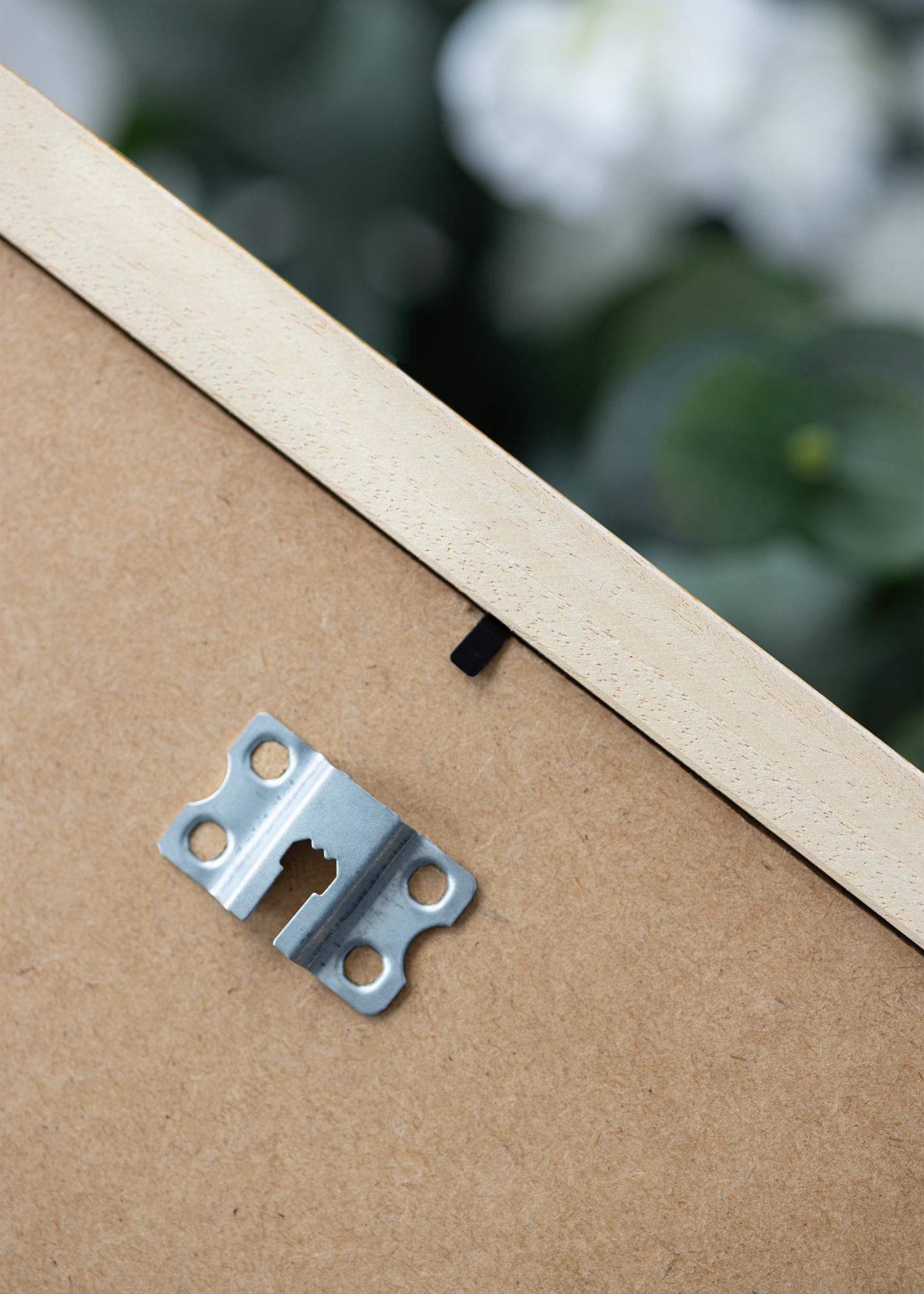Ramen är tillverkad av matt trä och har ett djup på 13 mm, vilket ger en stabil och robust känsla. Den är utrustad med metallhängare på baksidan, vilket gör det enkelt att hänga upp den både horisontellt och vertikalt. Detta gör den flexibel och lätt att anpassa efter dina behov.