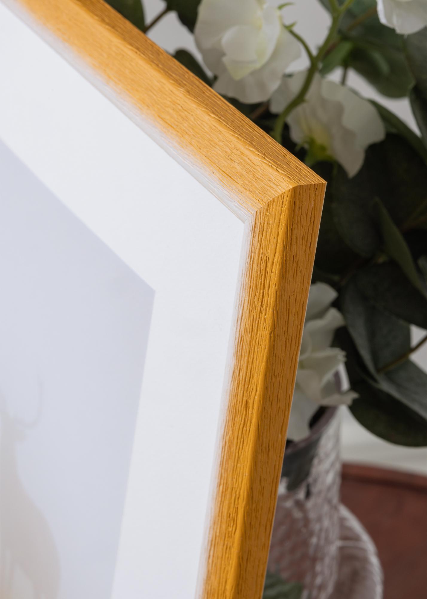 Den här fotoramen i storleken 30x30 cm är en perfekt kombination av modern design och klassisk elegans. Med sin varma gula ton och släta yta framhäver den den naturliga trästrukturen på ett subtilt sätt. Den smala profilen, med en ramlist på 23 mm, ger ett stilrent och avskalat uttryck som låter ditt motiv stå i centrum.