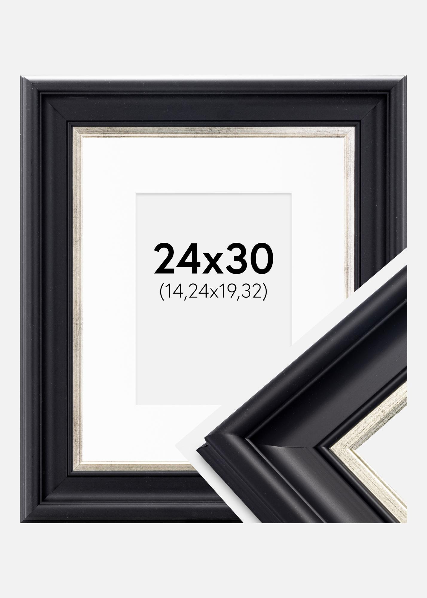 Ram Dalarna Svart-Silver 24x30 cm - Passepartout Vit 6x8 inches