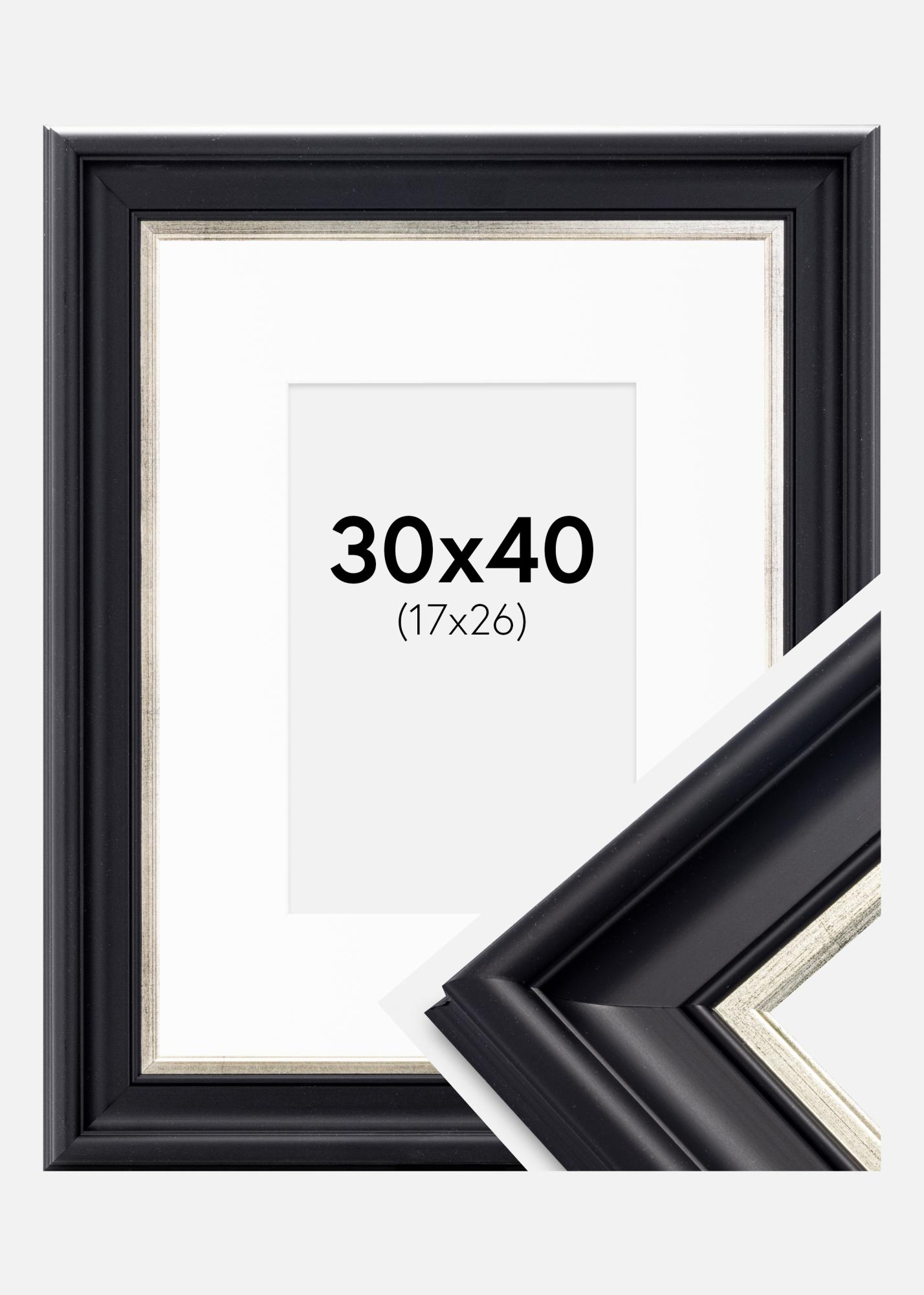 Ram Dalarna Svart-Silver 30x40 cm - Passepartout Vit 18x27 cm