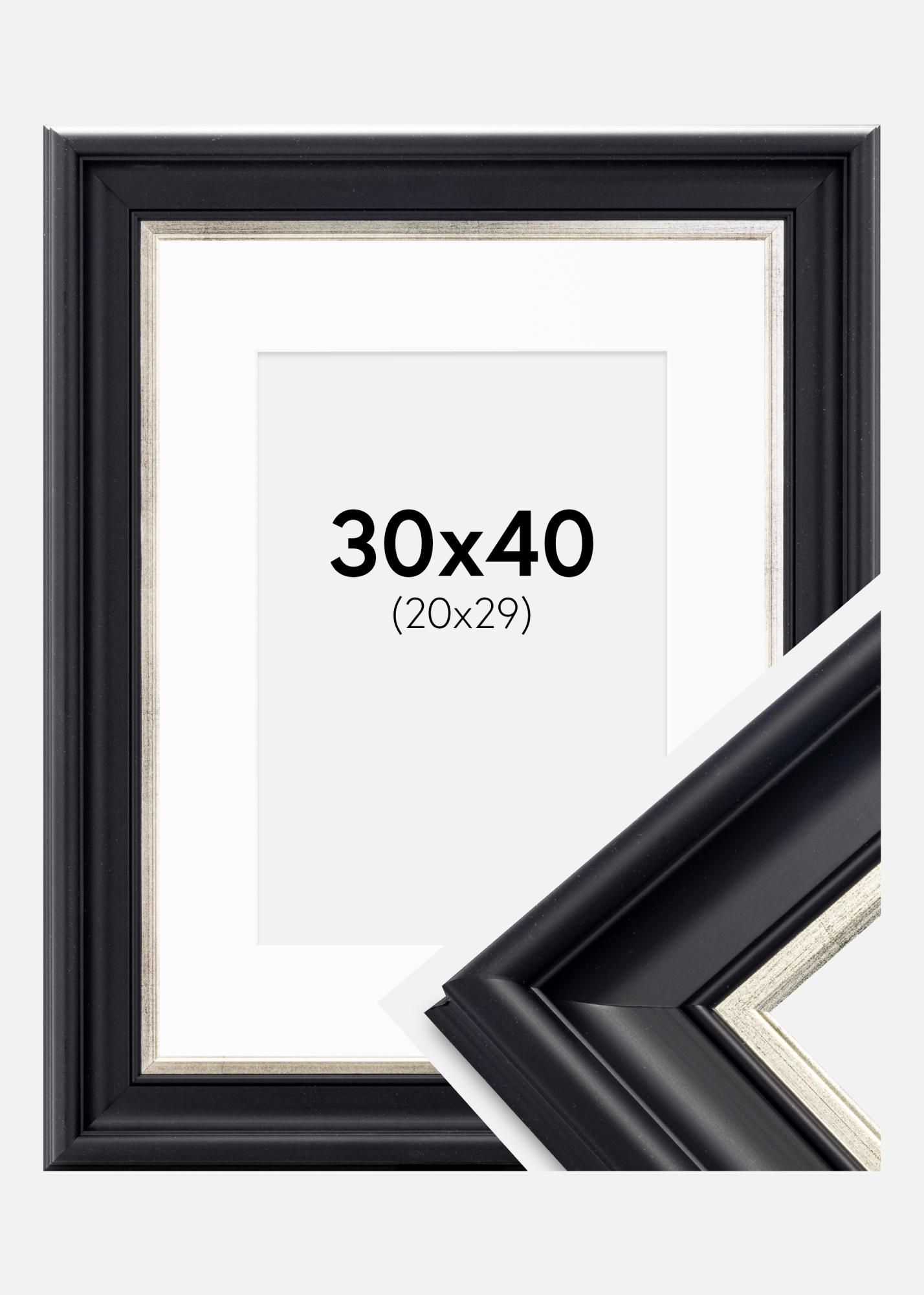 Ram Dalarna Svart-Silver 30x40 cm - Passepartout Vit 21x30 cm