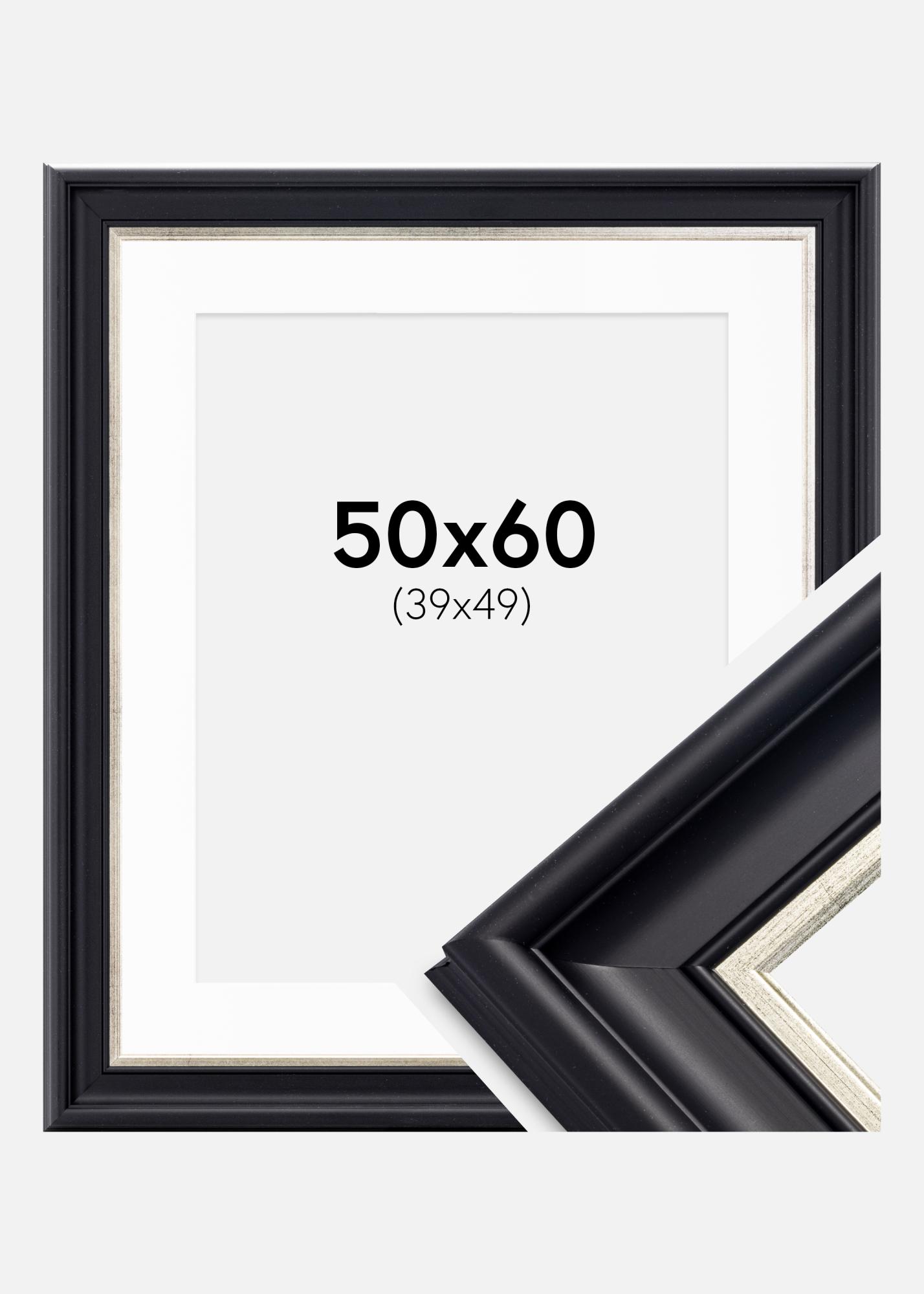 Ram Dalarna Svart-Silver 50x60 cm - Passepartout Vit 40x50 cm