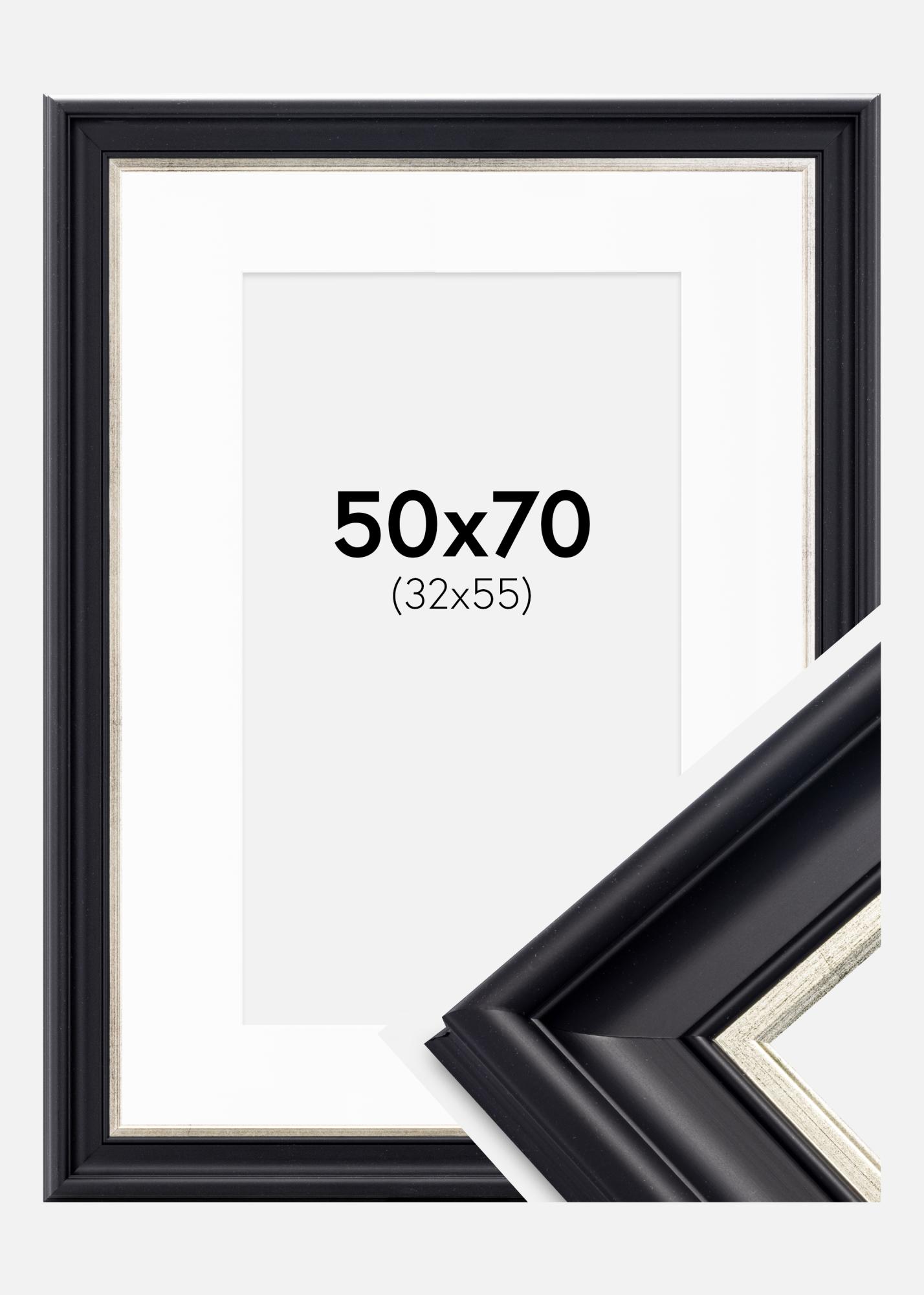 Ram Dalarna Svart-Silver 50x70 cm - Passepartout Vit 33x56 cm