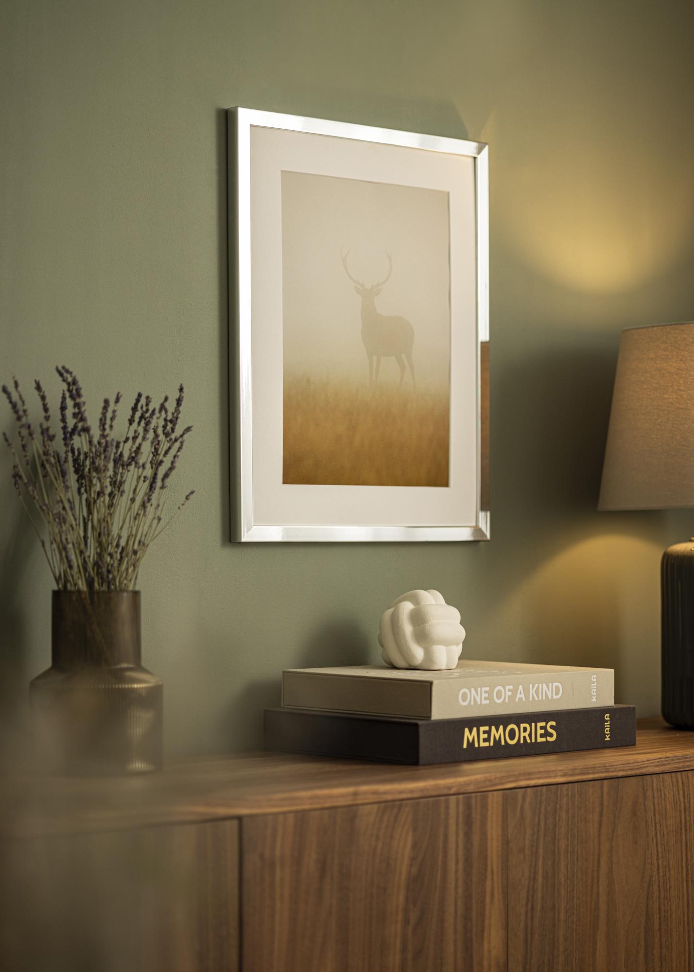 Devon Silver är en måttbeställd tavelram som tillverkas av oss med precision och omsorg. Med sin eleganta silverfinish och spegelblanka yta reflekterar denna fotoram ljus på ett sätt som skapar en modern och stilren känsla i ditt hem. Den släta metalliska ytan fångar upp omgivningen och ger en dynamisk lyster beroende på ljusets vinkel.