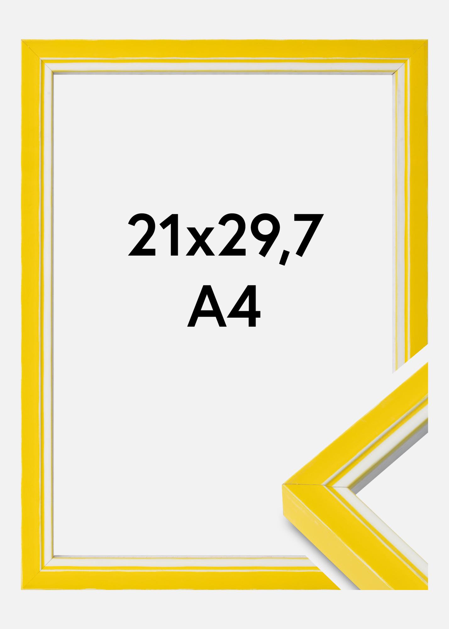 Ge dina bilder en färgstark inramning med denna 21x29,7 cm (A4) stora fotoram. Den gul- och vitmålade ytan på ramen tillför en lekfull och ljus dimension till ditt motiv. Tillverkad i Nederländerna, erbjuder denna tavelram en kvalitet och hållbarhet som kompletterar din inredning.
