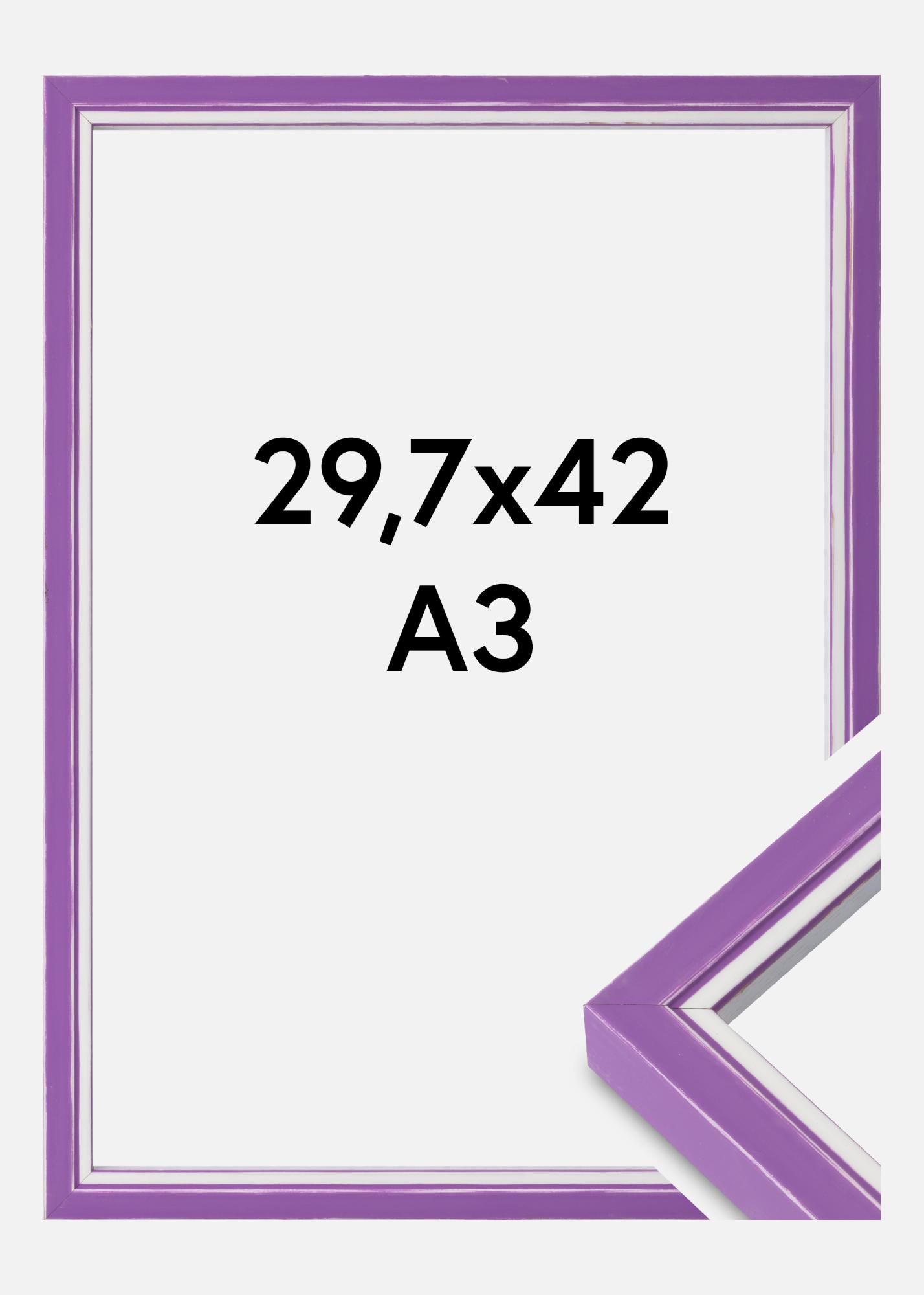 Ge dina väggar en färgklick med denna iögonfallande 29,7x42 cm (A3) stora tavelram. Med sin unika kombination av lila och vit, tillför denna ram en extra dimension till ditt konstverk eller foto. Den är inte bara en stilfull inramning, utan också ett praktiskt val tack vare det kristallklara och splitterfria akrylglaset som skyddar dina bilder.
