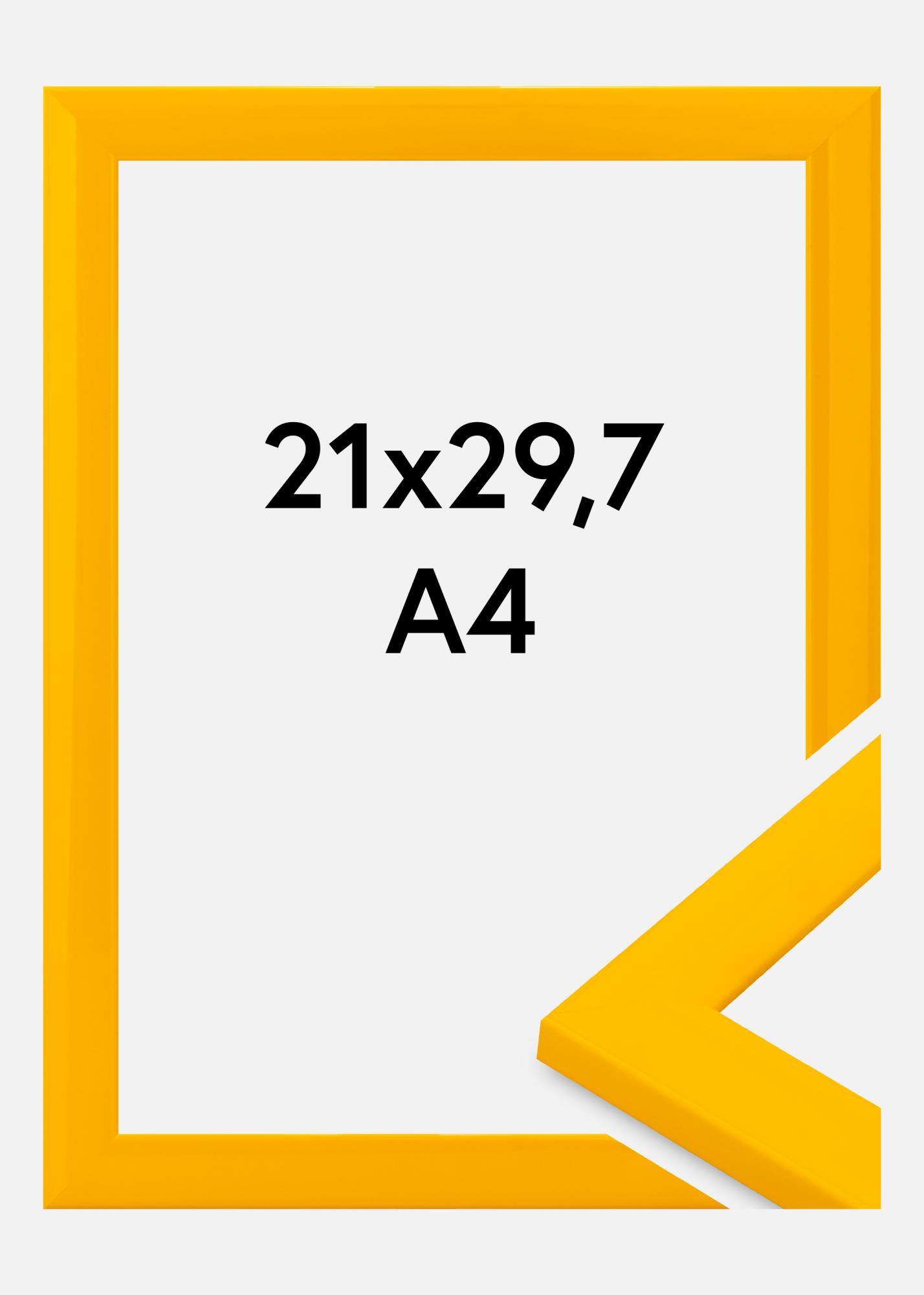 Den här fotoramen i en klar gul ton är perfekt för att ge dina bilder ett livfullt och modernt uttryck. Med en storlek på 21x29.7 cm (A4) passar den utmärkt för både fotografier och posters. Den blanka ytan och den tunna profilen ger ramen ett minimalistiskt utseende, vilket gör att motivet verkligen kommer till sin rätt.