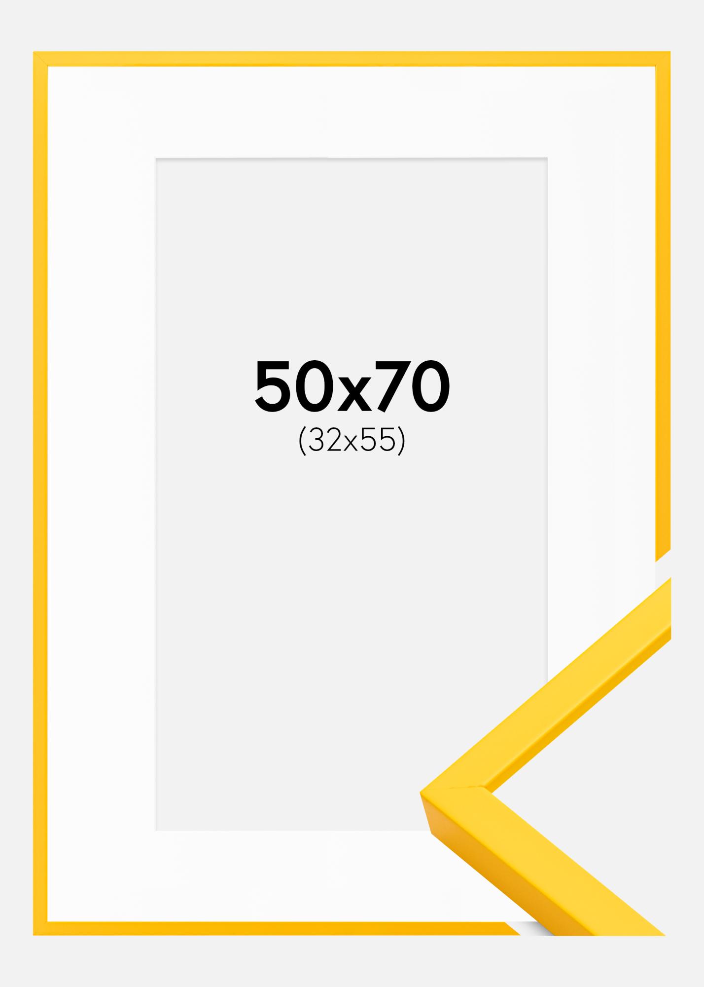 Ge dina favoritbilder den uppmärksamhet de förtjänar med en elegant gul ram, komplett med vit passepartout. Denna ram, som mäter 33x56 cm, är den perfekta lösningen för att framhäva dina fotografier eller konstverk. Den 12 mm breda och 20 mm djupa ramen har en matt yta som tillför en subtil och sofistikerad touch till din inredning.