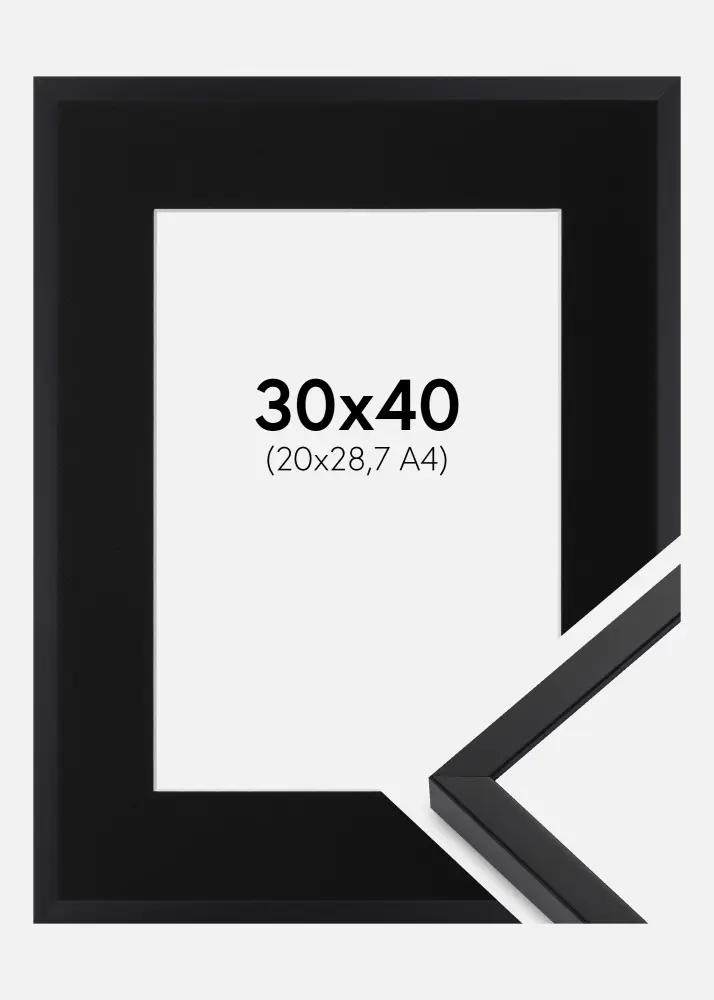 Ram E-Line Svart 30x40 cm - Passepartout Svart 21x29,7 cm (A4)