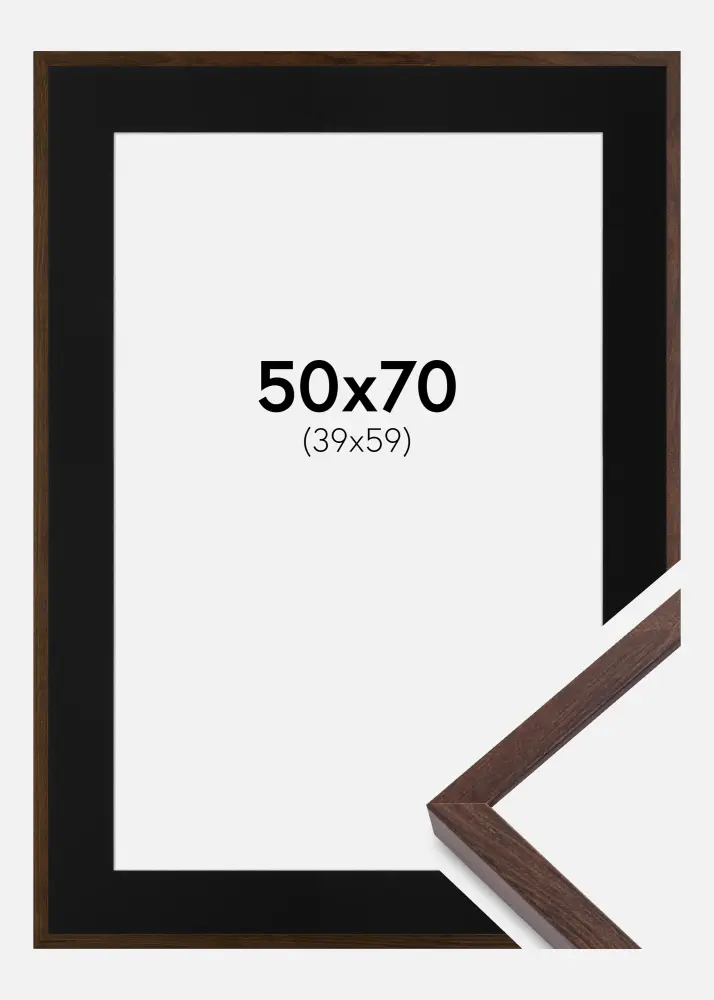 Ram E-Line Valnöt 50x70 cm - Passepartout Svart 40x60 cm