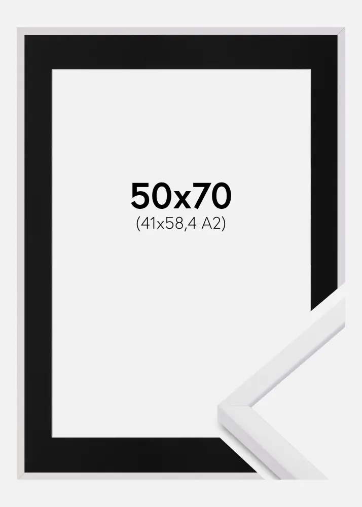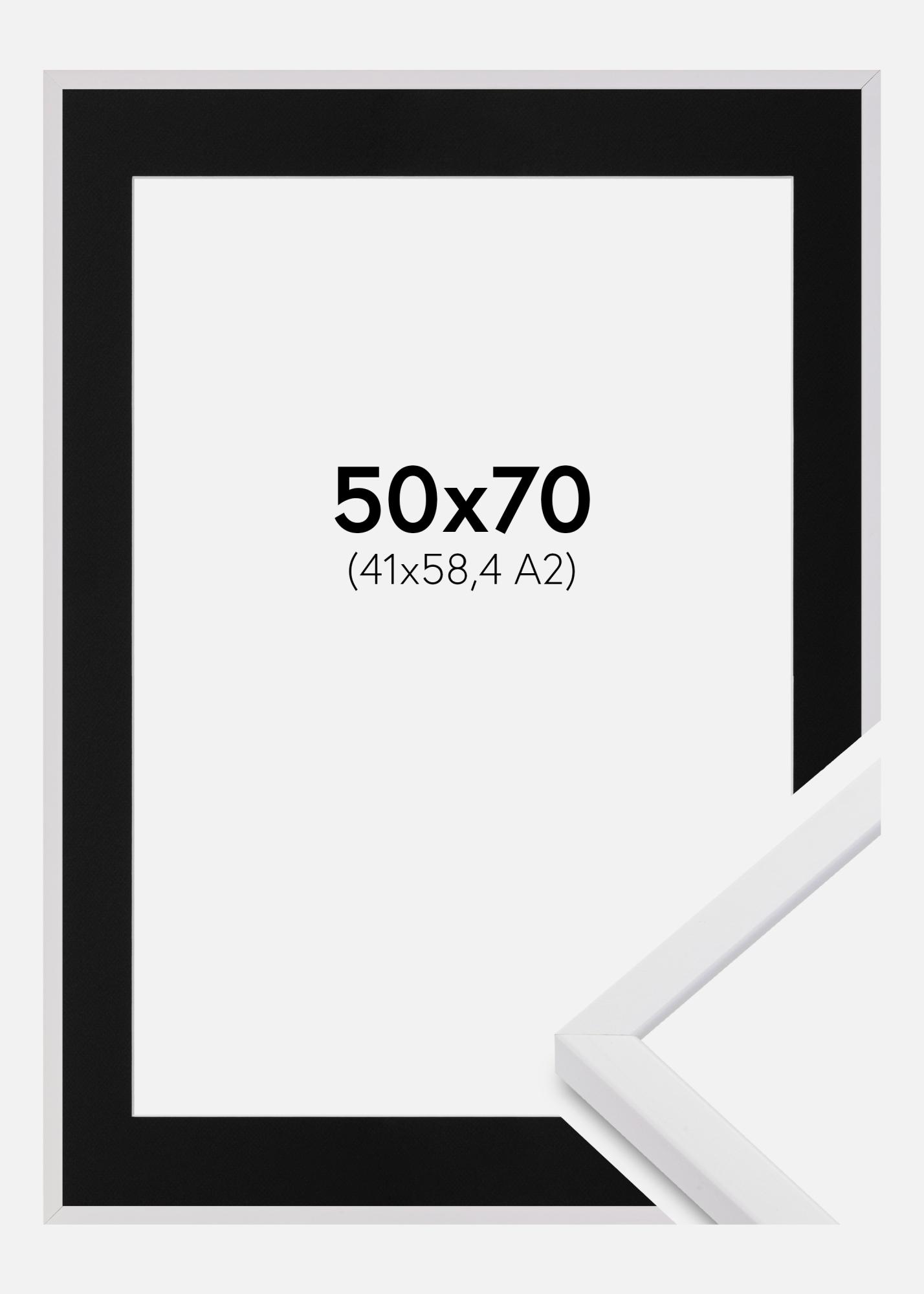 Ram E-Line Vit 50x70 cm - Passepartout Svart 42x59,4 cm (A2)