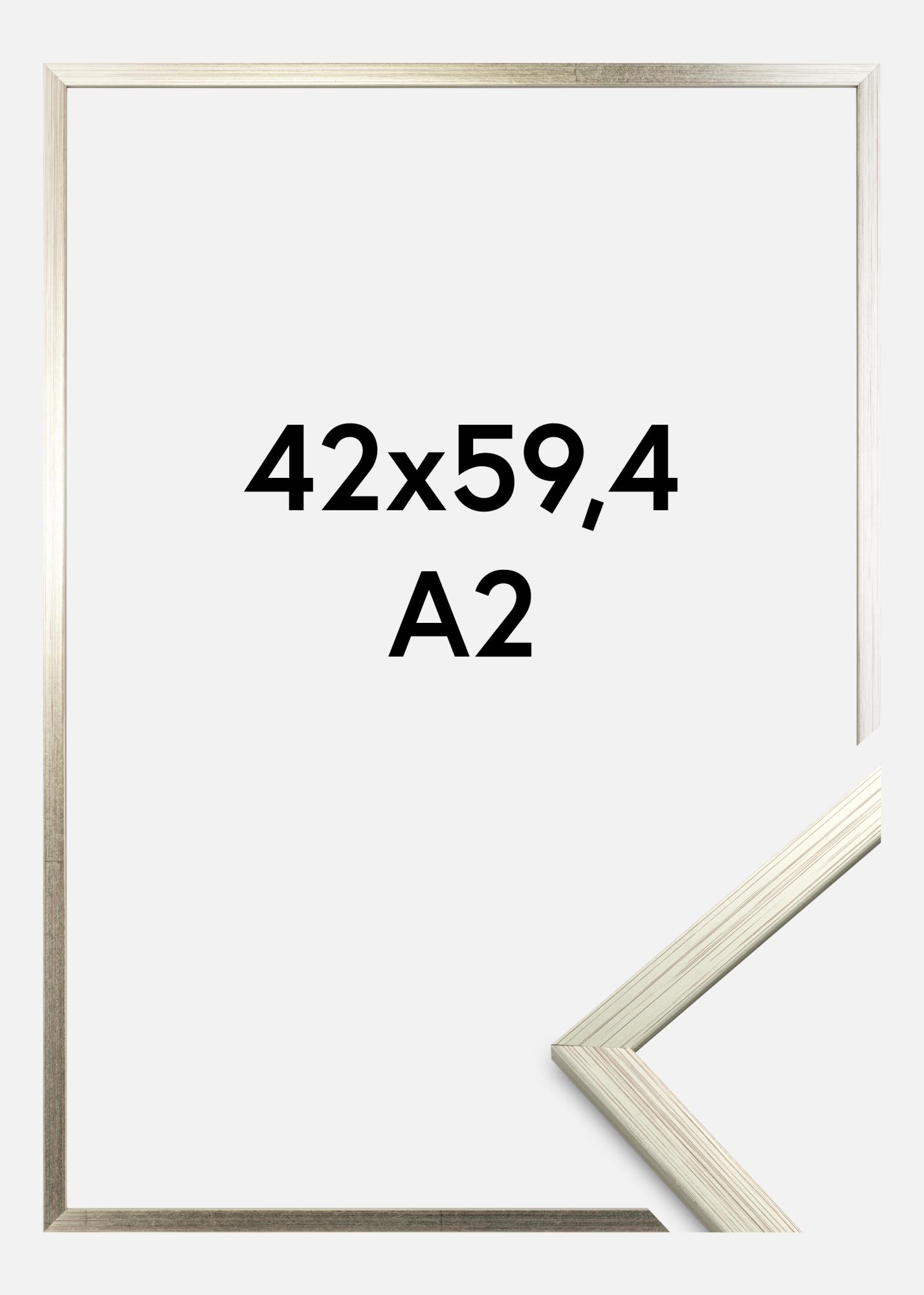 Ge dina affischer och konstverk en elegant inramning med denna silverfärgade fotoram. Med sina mått på 42x59,4 cm (A2) passar den perfekt för att framhäva dina A2-storleksbilder. Ramens design är tidlös, med en folierad yta som bjuder på en unik touch av rödspräckliga detaljer.