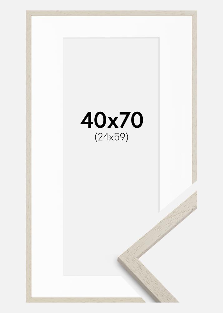 Ramen är 13 mm bred och har ett djup på 11,5 mm, vilket ger en diskret men ändå närvarande kant till din väggdekoration. Den matta finishen på ramen kompletterar den vita passepartouten och skapar en harmonisk visuell upplevelse. Ramens yttermått är 41,6x71,6 cm, vilket gör den till en markant men ändå balanserad inredningsdetalj.