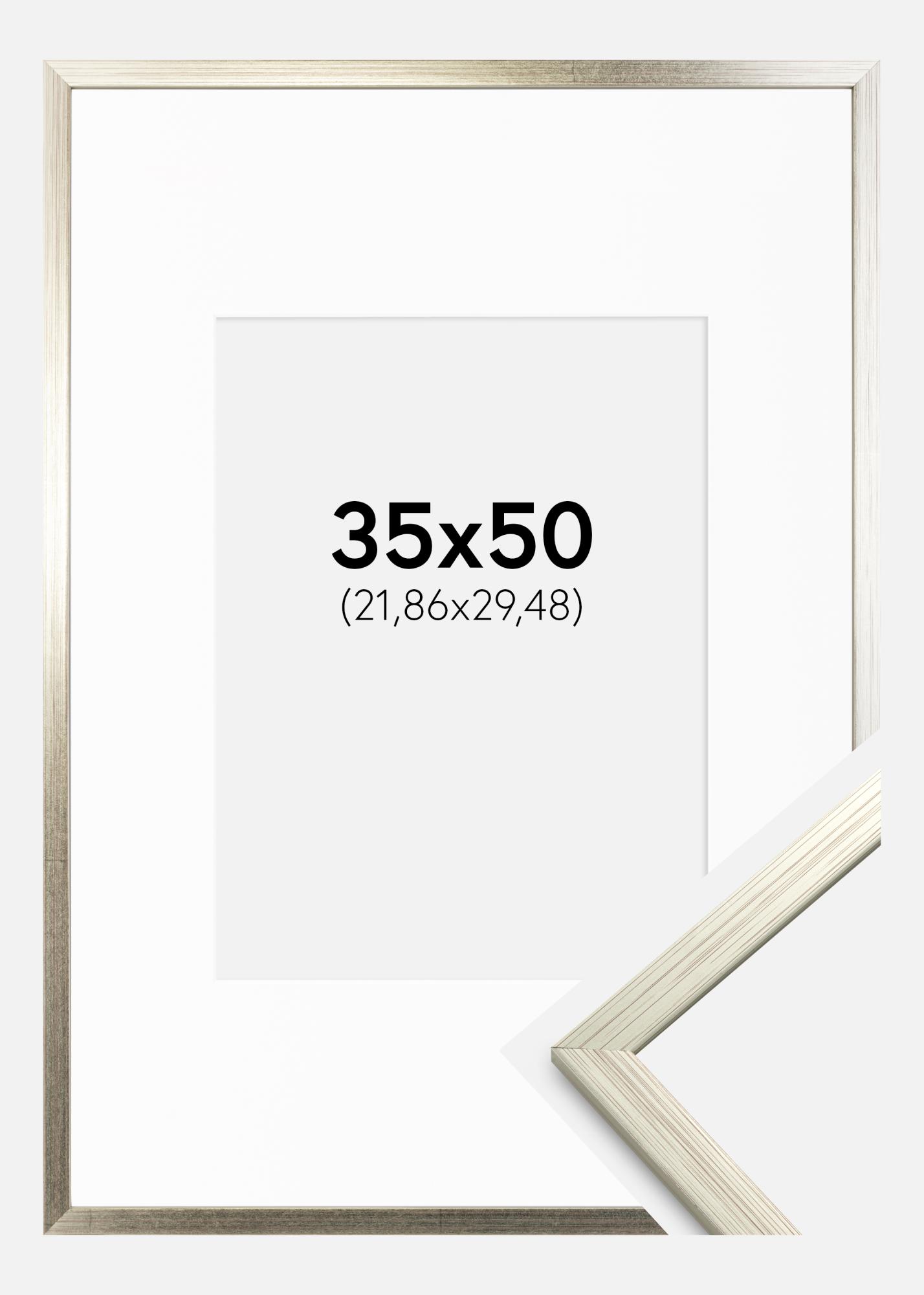 Ram Edsbyn Silver 35x50 cm - Passepartout Vit 9x12 inches