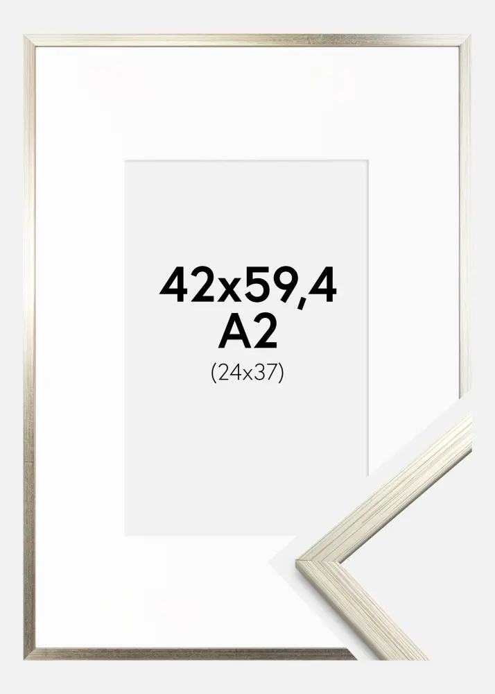 Försköna dina väggar med en elegant touch av silver och vit elegans. Denna sofistikerade ram med passepartout är designad för att ge dina bilder en distinkt och professionell framtoning. Med en bildstorlek på 25x38 cm är den perfekt för att framhäva dina favoritfotografier eller konstverk.