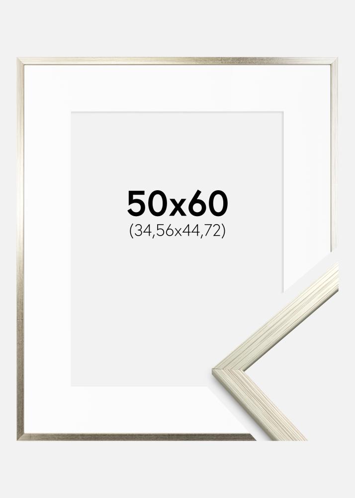 Ramen, som mäter 51,6x61,6 cm, är designad för att passa bilder i storleken 14x18 inches (35,56x45,72 cm), vilket gör den till ett perfekt val för både fotografier och konsttryck. Den slanka bredden på 13 mm ger en finess utan att ta överhanden, medan ramens djup på 11,5 mm skapar en intressant dimension och skugga. Den blanka silverfinishen på ramen kompletterar den vita passepartouten och tillsammans bildar de en harmonisk helhet som passar i många olika inredningsstilar.