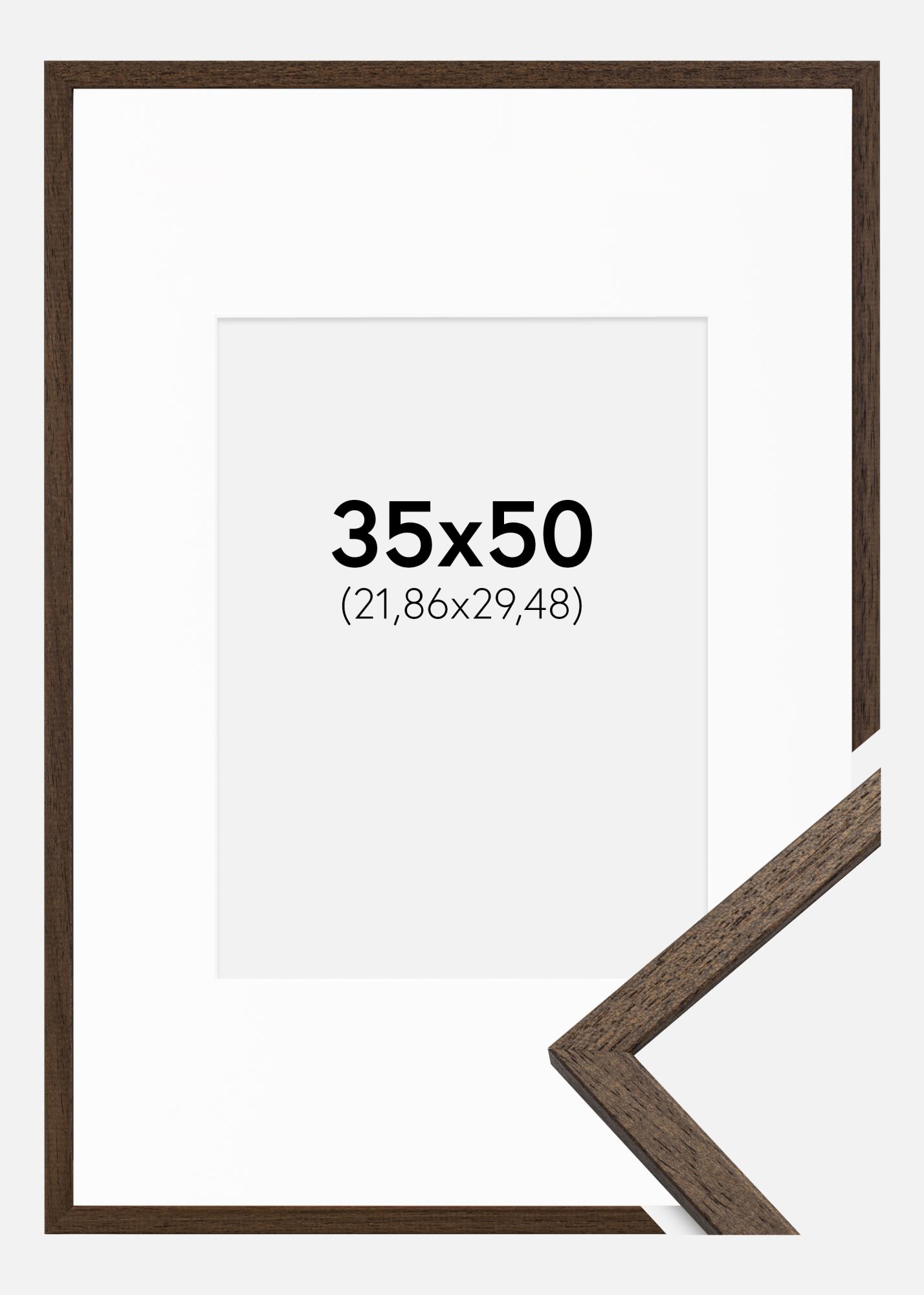 Ram Edsbyn Valnöt 35x50 cm - Passepartout Vit 9x12 inches