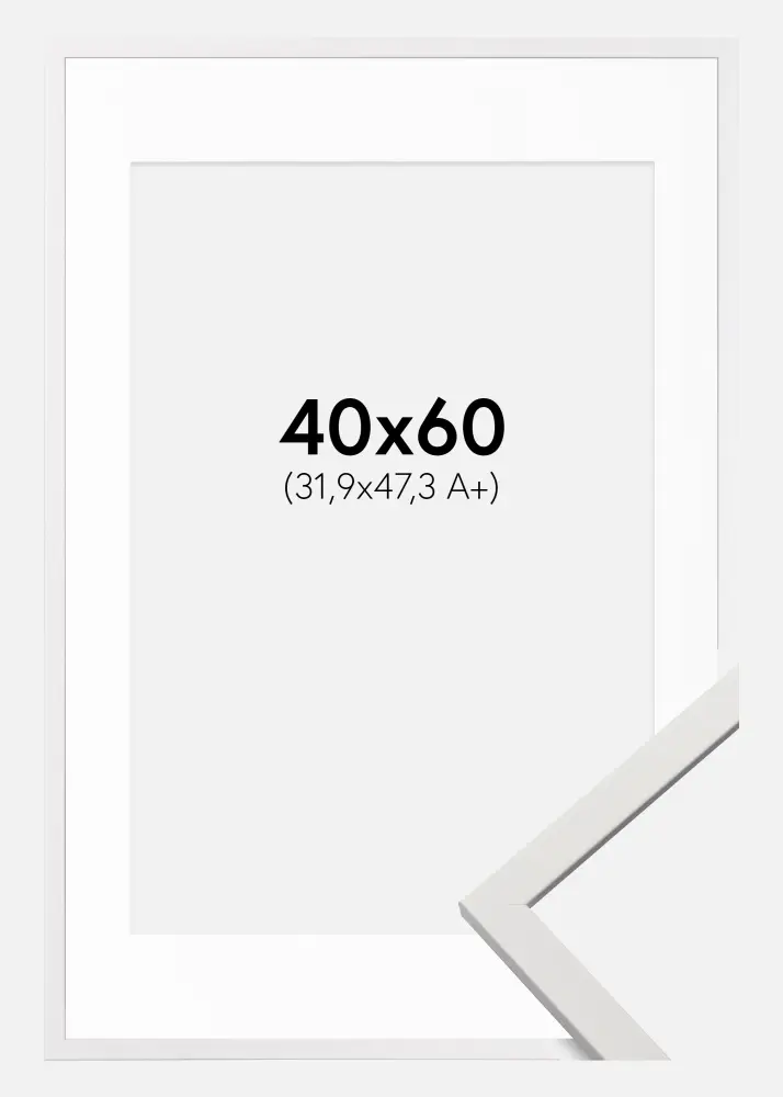 Ram Edsbyn Vit 40x60 cm - Passepartout Vit 32,9x48,3 cm (A3+)