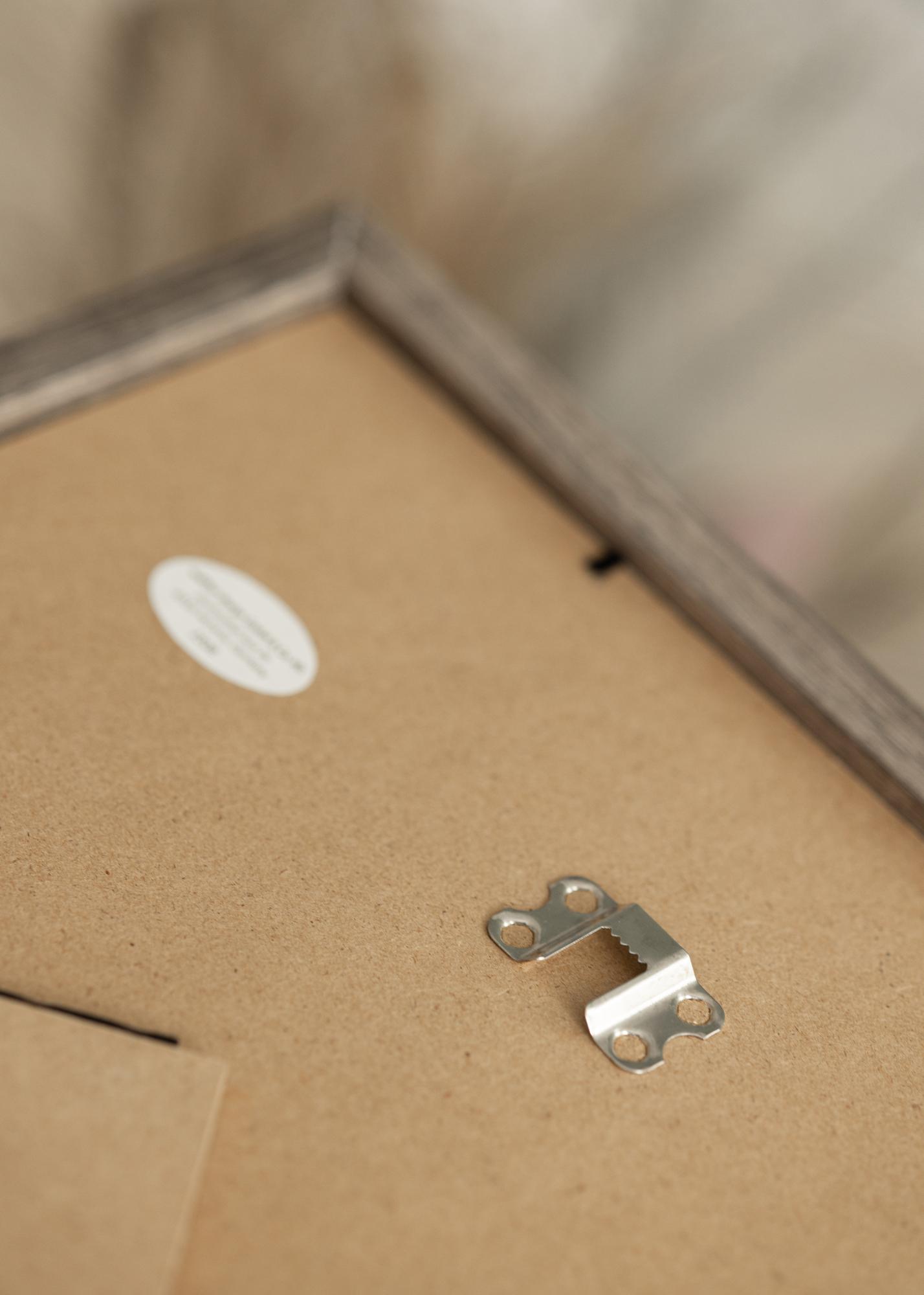 Detta är en fotoram med akrylglas, vilket är en okrossbar glasvariant som är lättare till vikten jämfört med vanligt glas. På baksidan finner du praktiska väggfästen som låter dig hänga upp ramen både horisontellt och vertikalt. Montering av bild sker med hjälp av böjbara stift på ramens baksida.