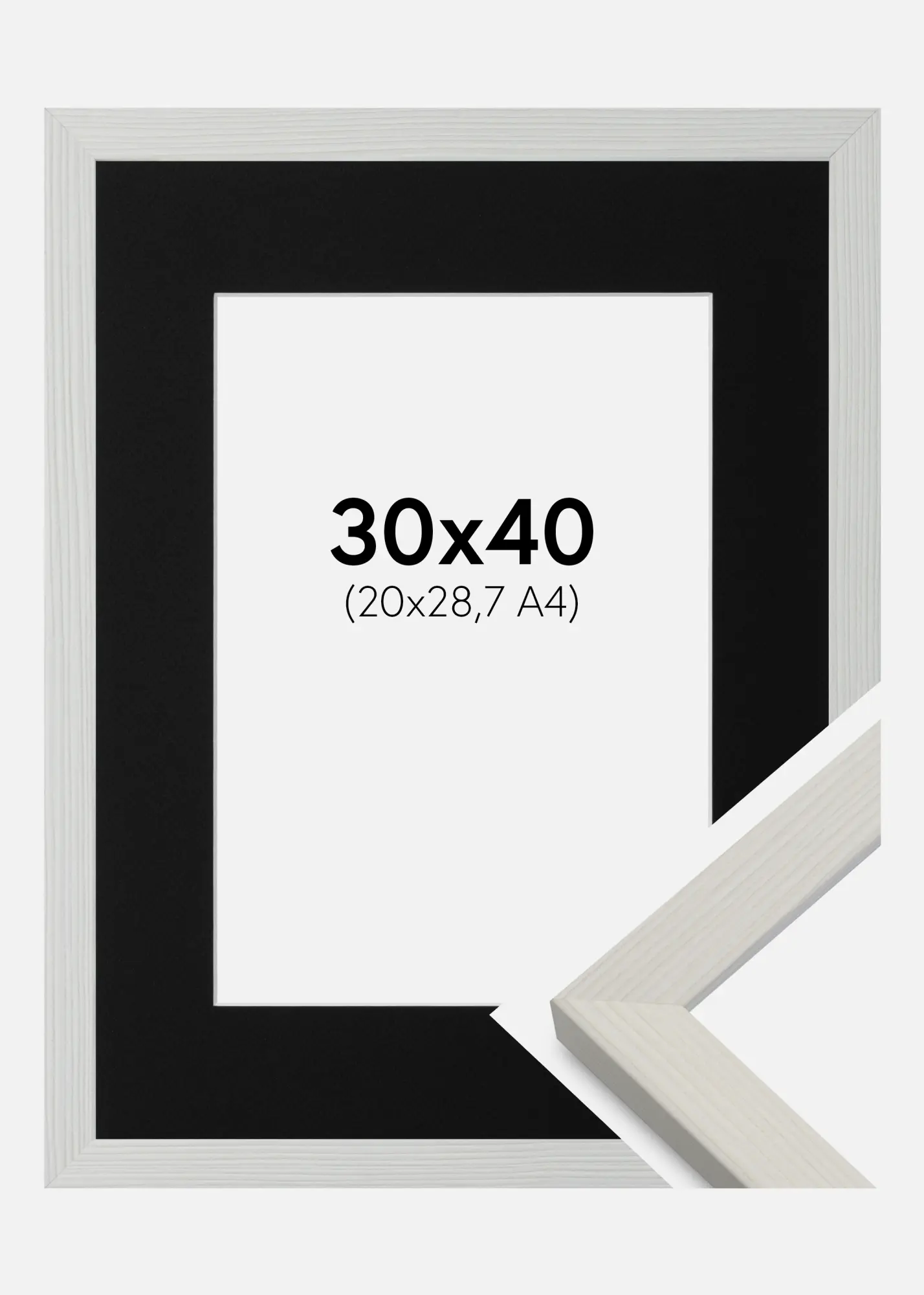 Ram Fiorito Vit 30x40 cm - Passepartout Svart 21x29,7 cm (A4)
