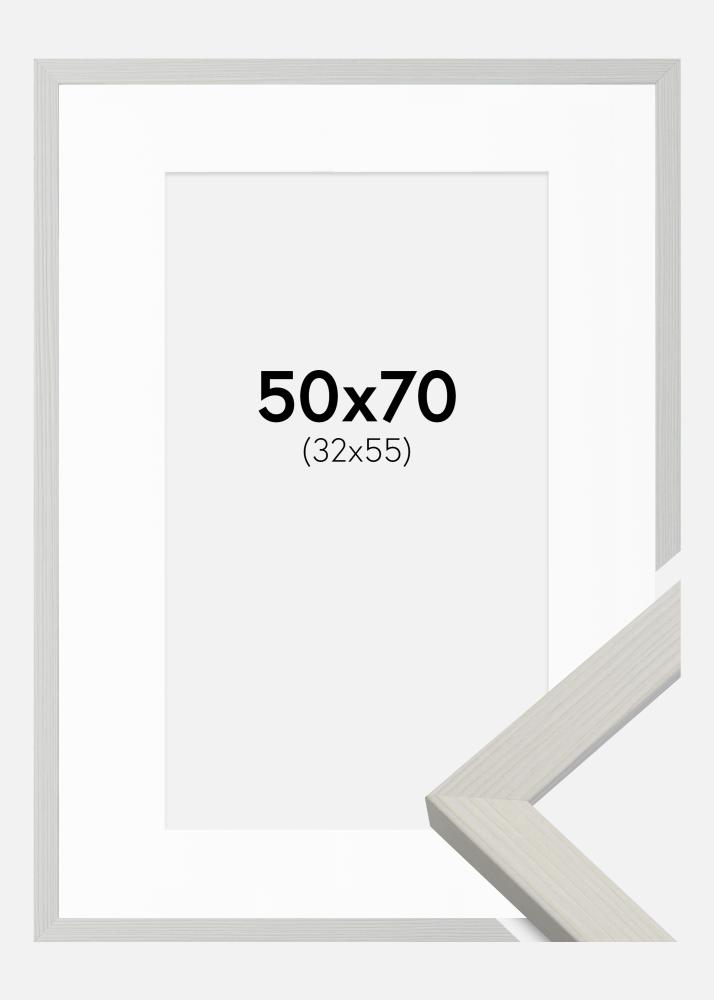 Upplev den eleganta enkelheten med vår vita ram, perfekt för att framhäva ditt 33x56 cm stora konstverk eller foto. Den medföljande vita passepartouten ger en professionell touch och låter ditt motiv ta centrum på väggen.