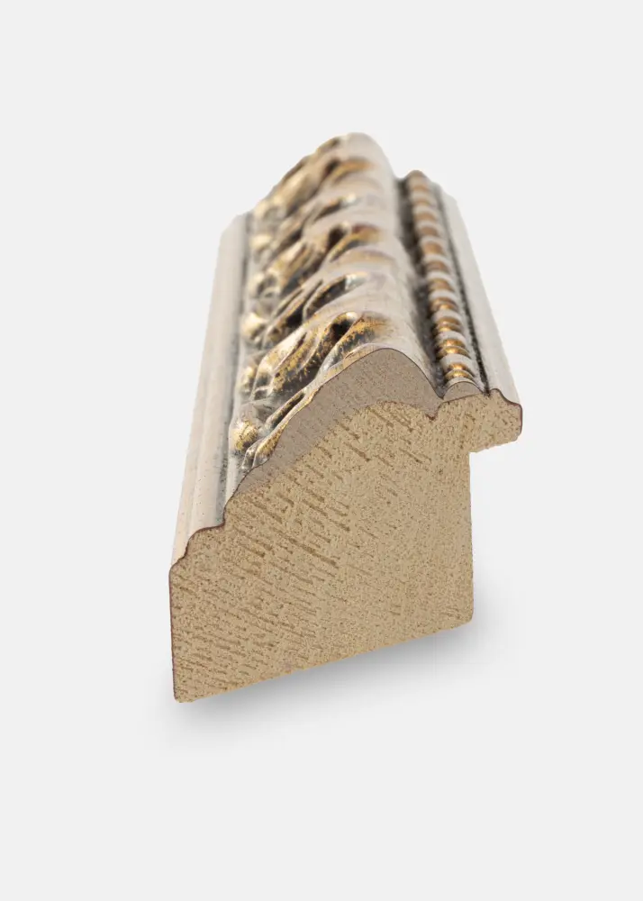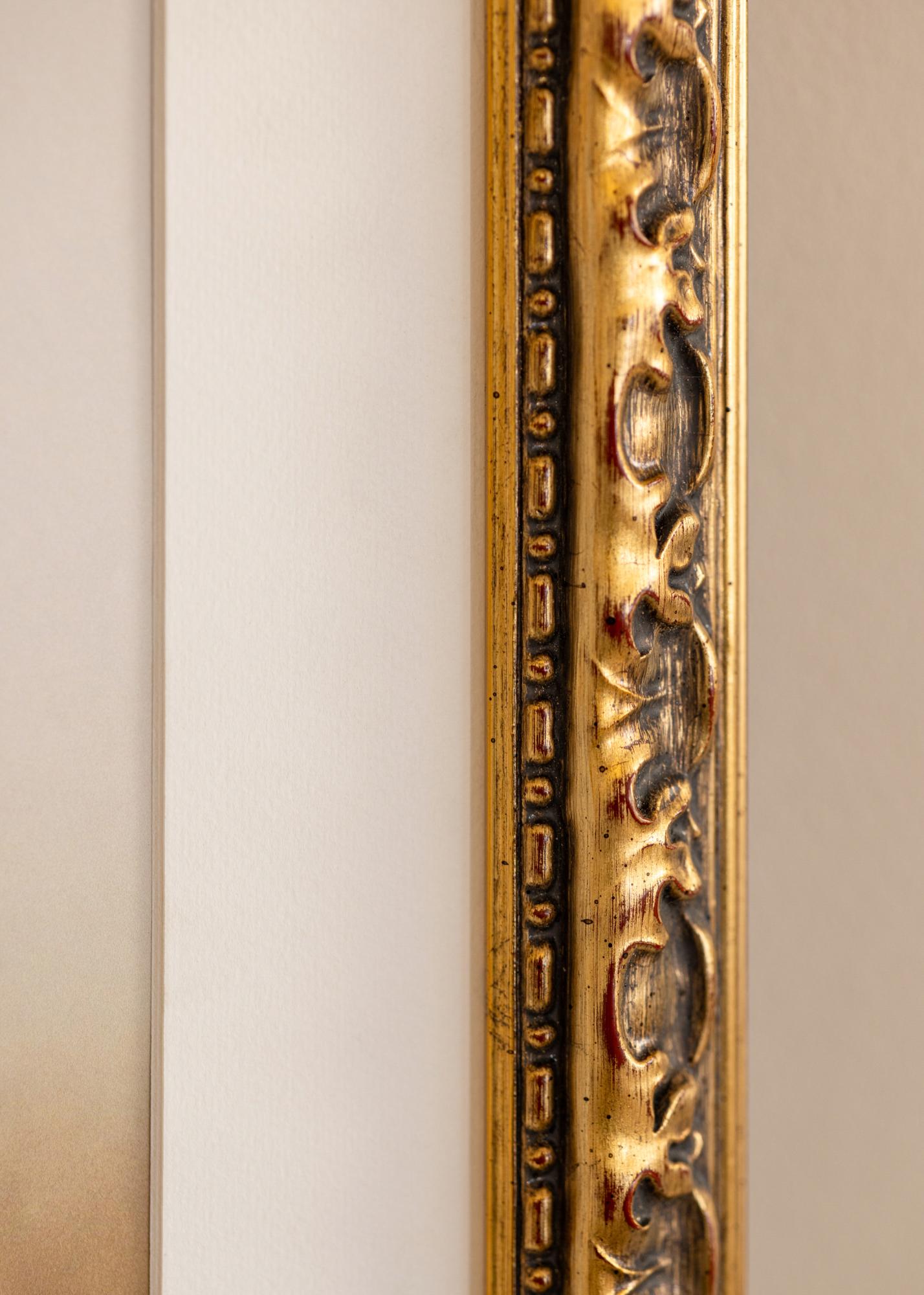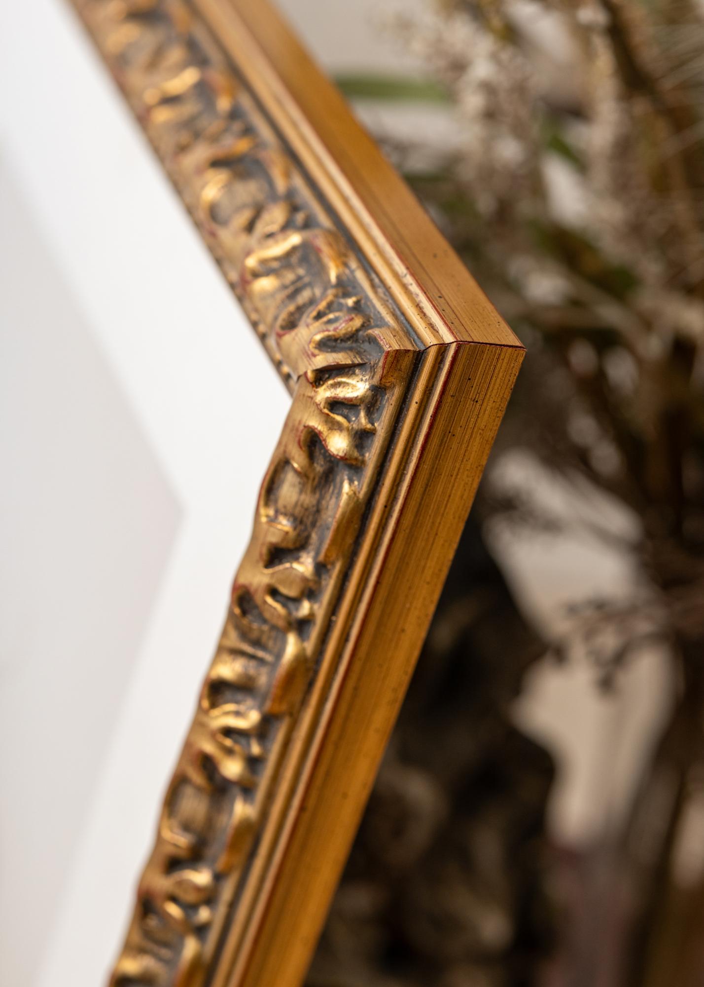Ram Freyja Guld är en elegant och stilfull fotoram som ger dina bilder en lyxig inramning. Med sin guldfärgade yta och intrikata ornament blir den ett iögonfallande inslag i vilket rum som helst. Den antika finishen, med mörka patinerade detaljer och subtila röda inslag, förstärker ramens rustika karaktär och ger den en tidlös charm.