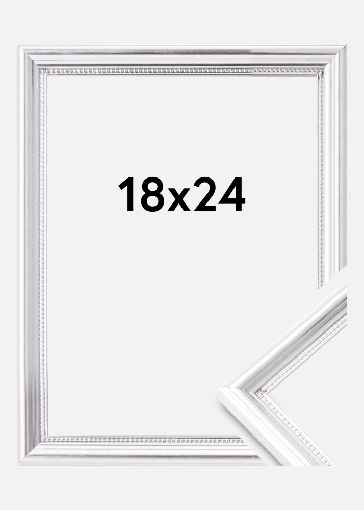 Ge dina bilder en touch av elegans med denna silverfärgade fotoram i storleken 18x24 cm. Den profilerade ramen i retrostil ger en klassisk känsla samtidigt som den blanka ytan tillför en modern lyster till ditt hem. Med en ramlist som mäter 20 mm i bredd och ett djup på 17 mm, skapar denna tavelram en distinkt och stilfull inramning av dina favoritfotografier eller konstverk.