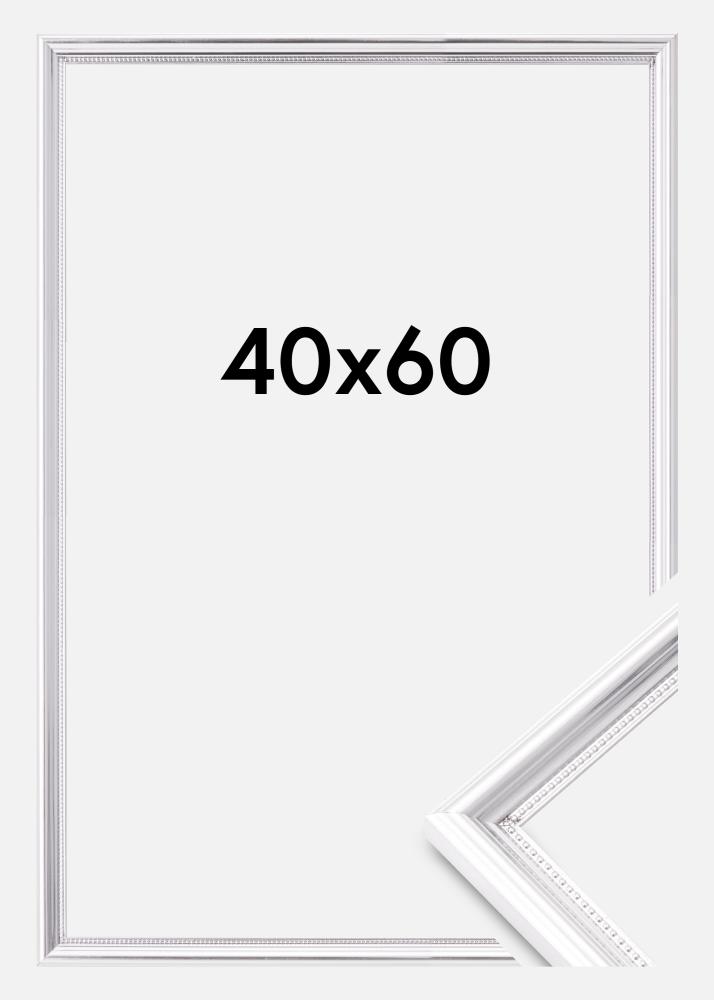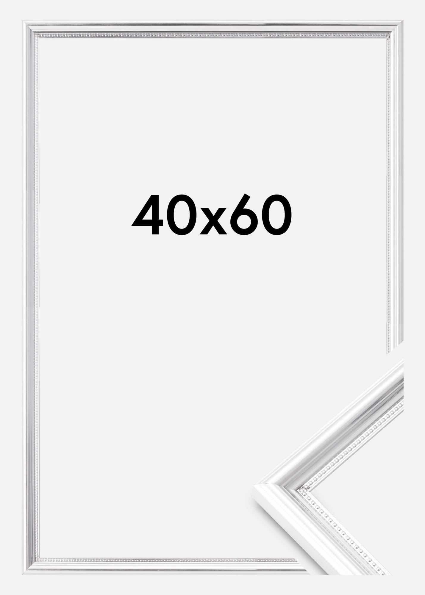 Ge dina väggar en touch av elegans med denna silverfärgade fotoram i storleken 40x60 cm. Med sin profilerade ramlist på 20 mm och ett djup på 17 mm, kombinerar denna tavelram klassisk design med moderna detaljer. Den blanka ytan reflekterar ljuset vackert och tillför en lyxig känsla till ditt utvalda fotografi eller konstverk.