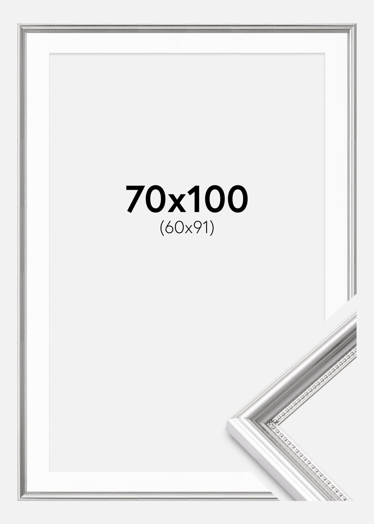 Förvandla dina bilder till konstverk med vår eleganta silverfärgade ram, komplett med en stilren vit passepartout. Denna ram är designad för att passa bilder i storleken 61x92 cm och ger dina fotografier en sofistikerad inramning som verkligen lyfter fram motivet.