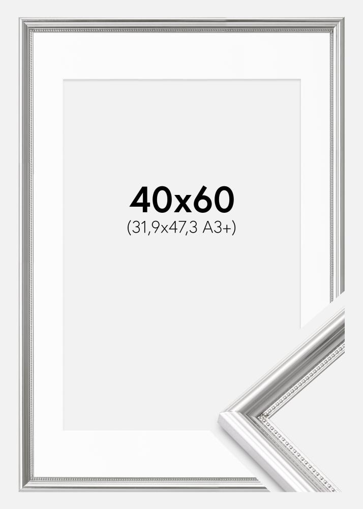Ram Gala Silver 40x60 cm - Passepartout Vit 32,9x48,3 cm (A3+)