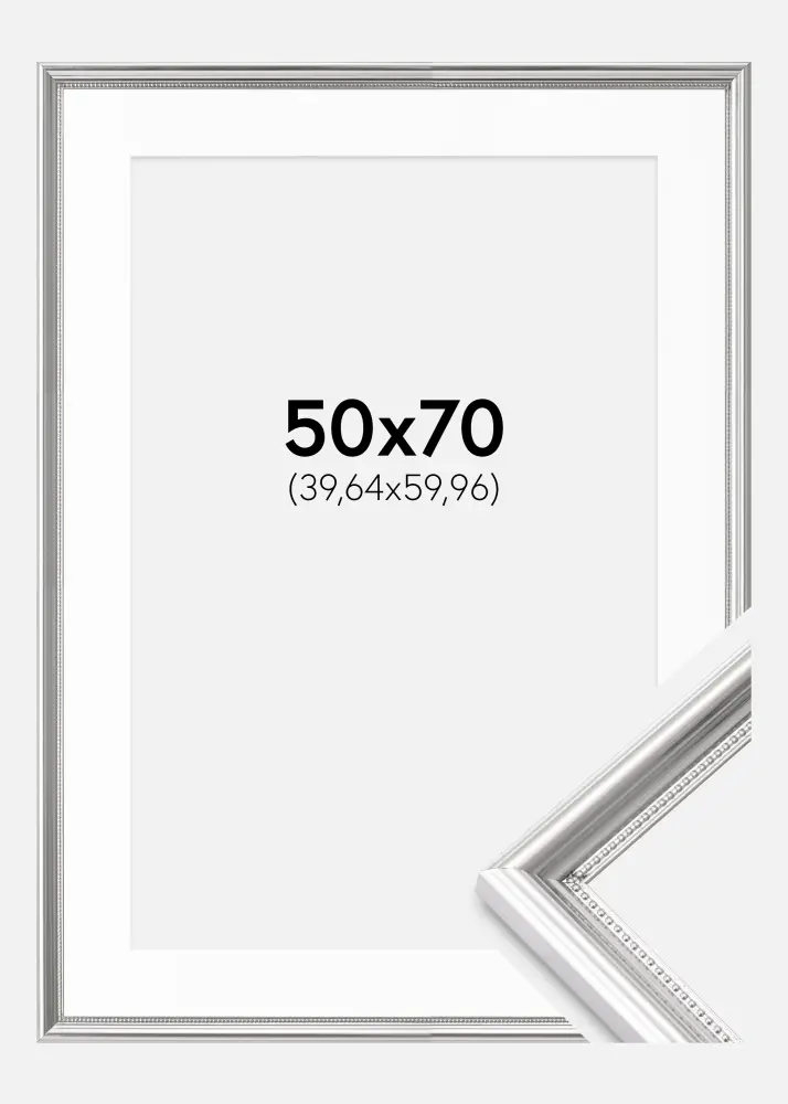 Ram Gala Silver 50x70 cm - Passepartout Vit 16x24 inches