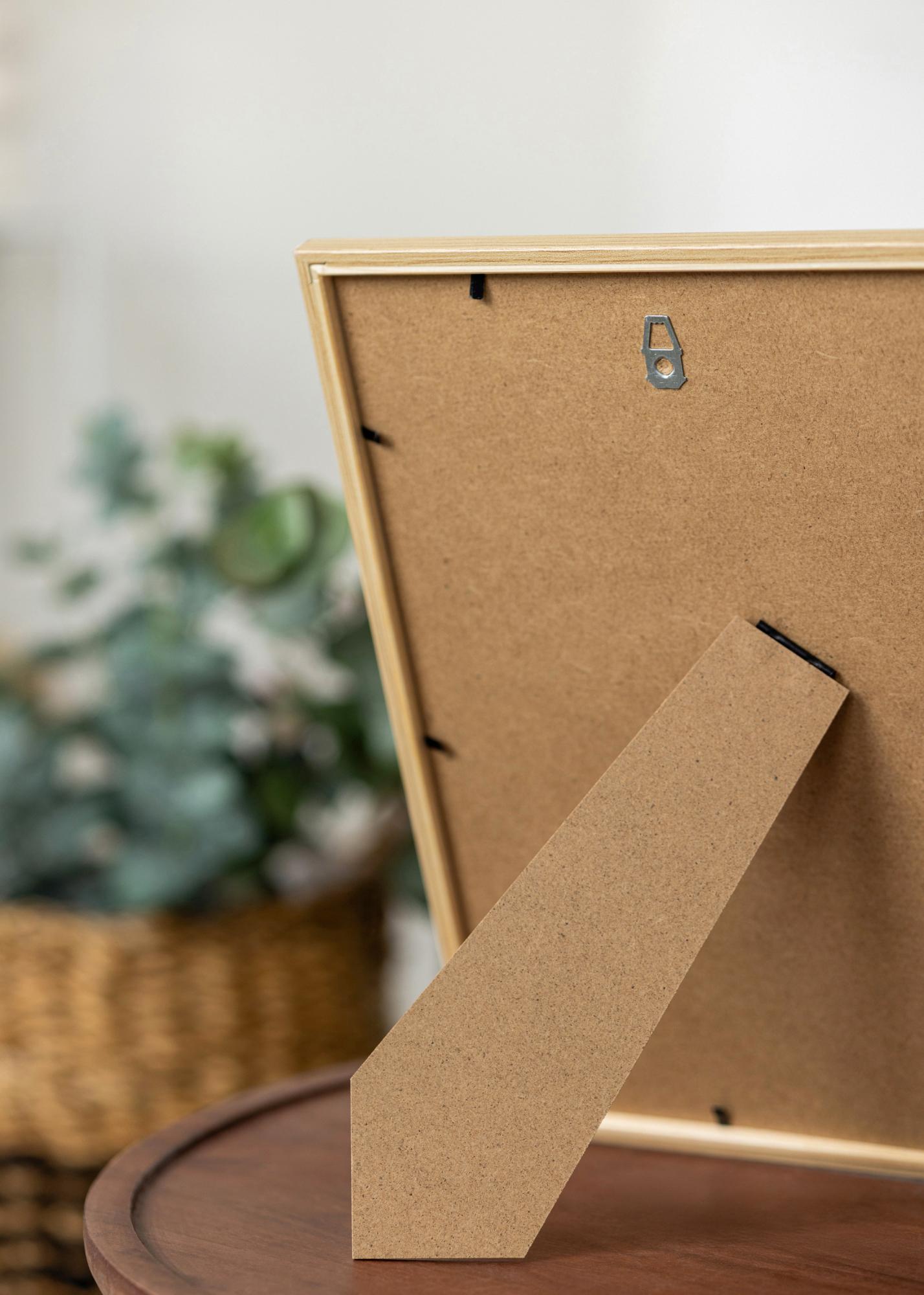 Detta är en tunn ram som passar perfekt när du vill låta allt fokus vara på motivet! Ramlisten 13 mm djup och 13 mm bred, vilket innebär att ramen har en smidig men ändå gedigen design. Ramen är tillverkad i furu och har en ekfärgad yta. På baksidan finns väggfästen för både liggande och stående upphängning.