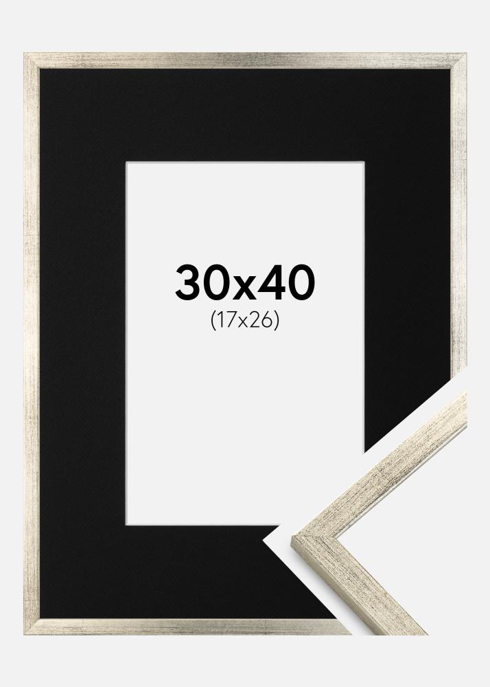 Ram Galant Silver 30x40 cm - Passepartout Svart 18x27 cm