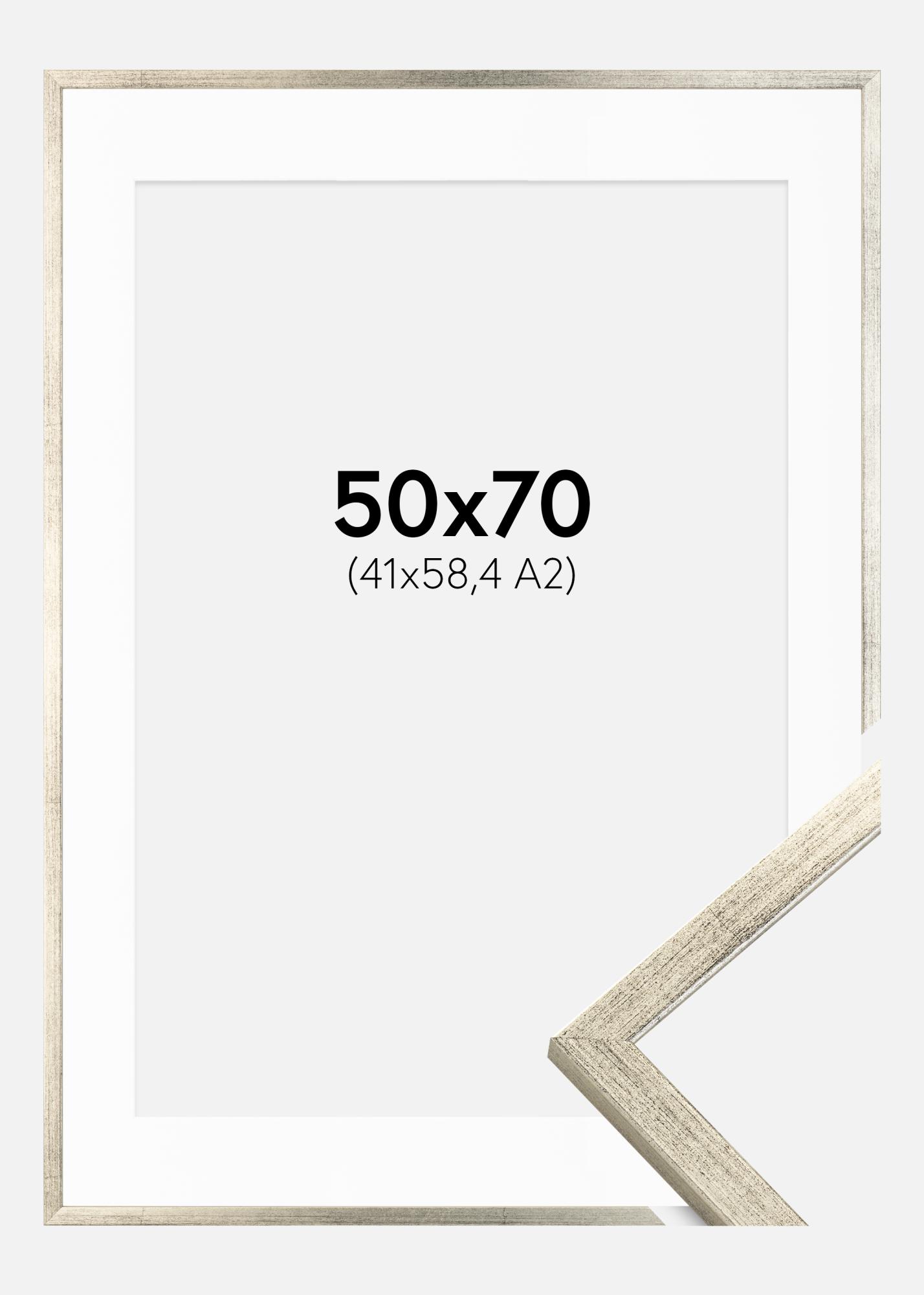 Ram Galant Silver 50x70 cm - Passepartout Vit 42x59,4 cm (A2)