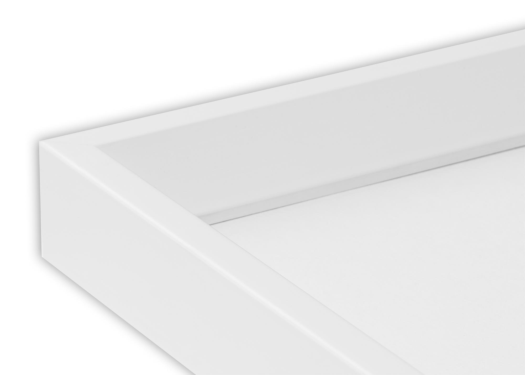 Ramen är 20 mm bred och har ett djup på 25 mm, vilket ger en robust och distinkt kant till din bild. Dess blanka yta reflekterar ljuset på ett subtilt sätt och bidrar till att dra ögat mot konstverket. Med de medföljande metallhängarna på baksidan är det enkelt att hänga upp din ram både horisontellt och vertikalt, beroende på ditt konstverks orientering och ditt utrymmes behov.