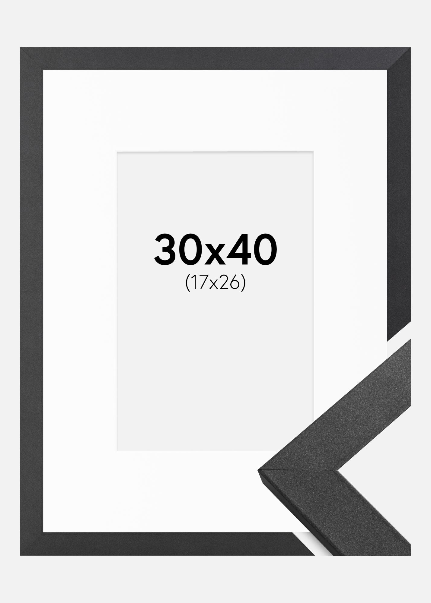 Ram Graphite Wood 30x40 cm - Passepartout Vit 18x27 cm