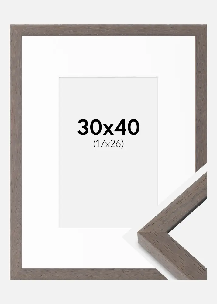 Ram Hermes Grå 30x40 cm - Passepartout Vit 18x27 cm