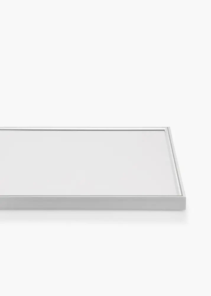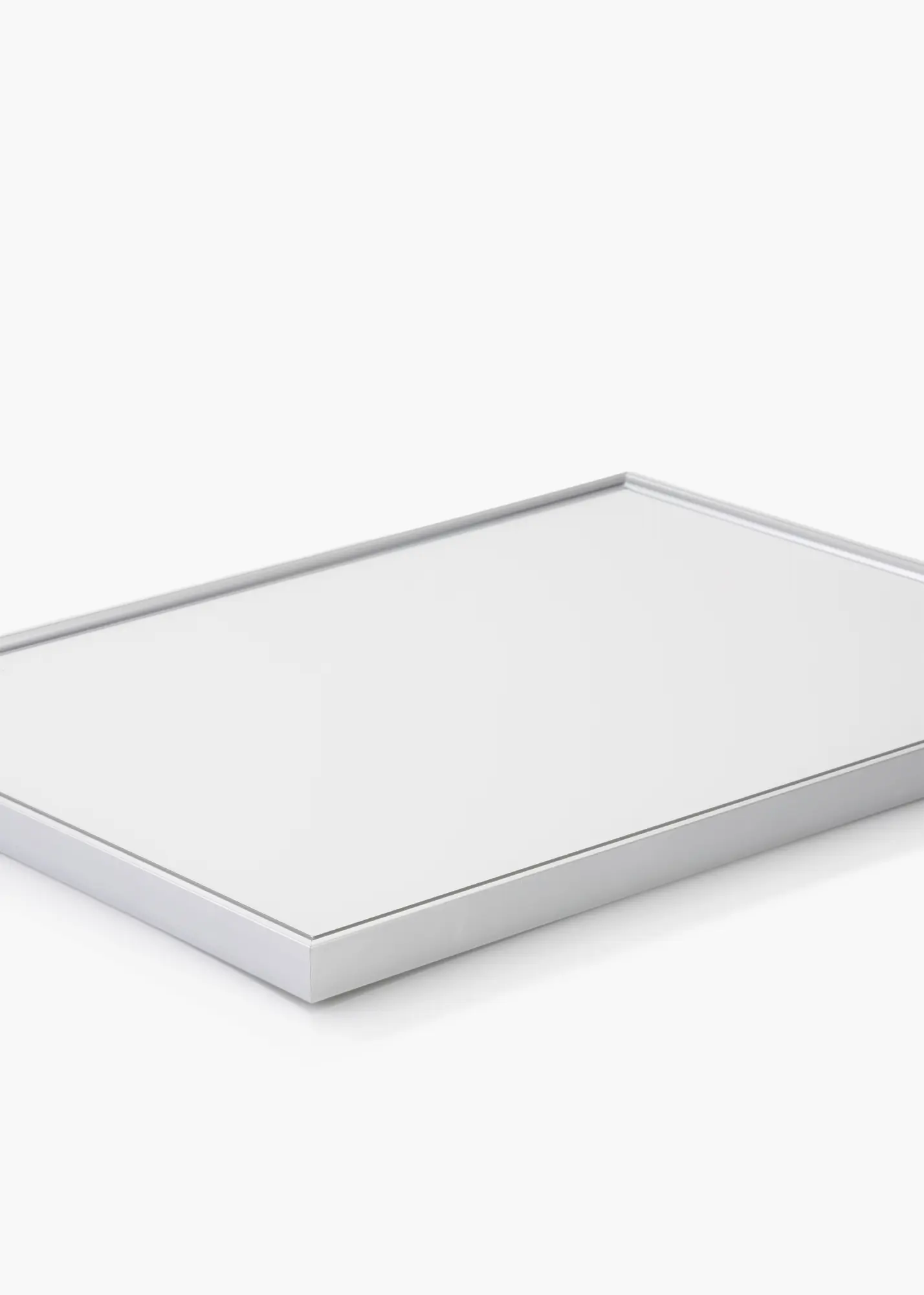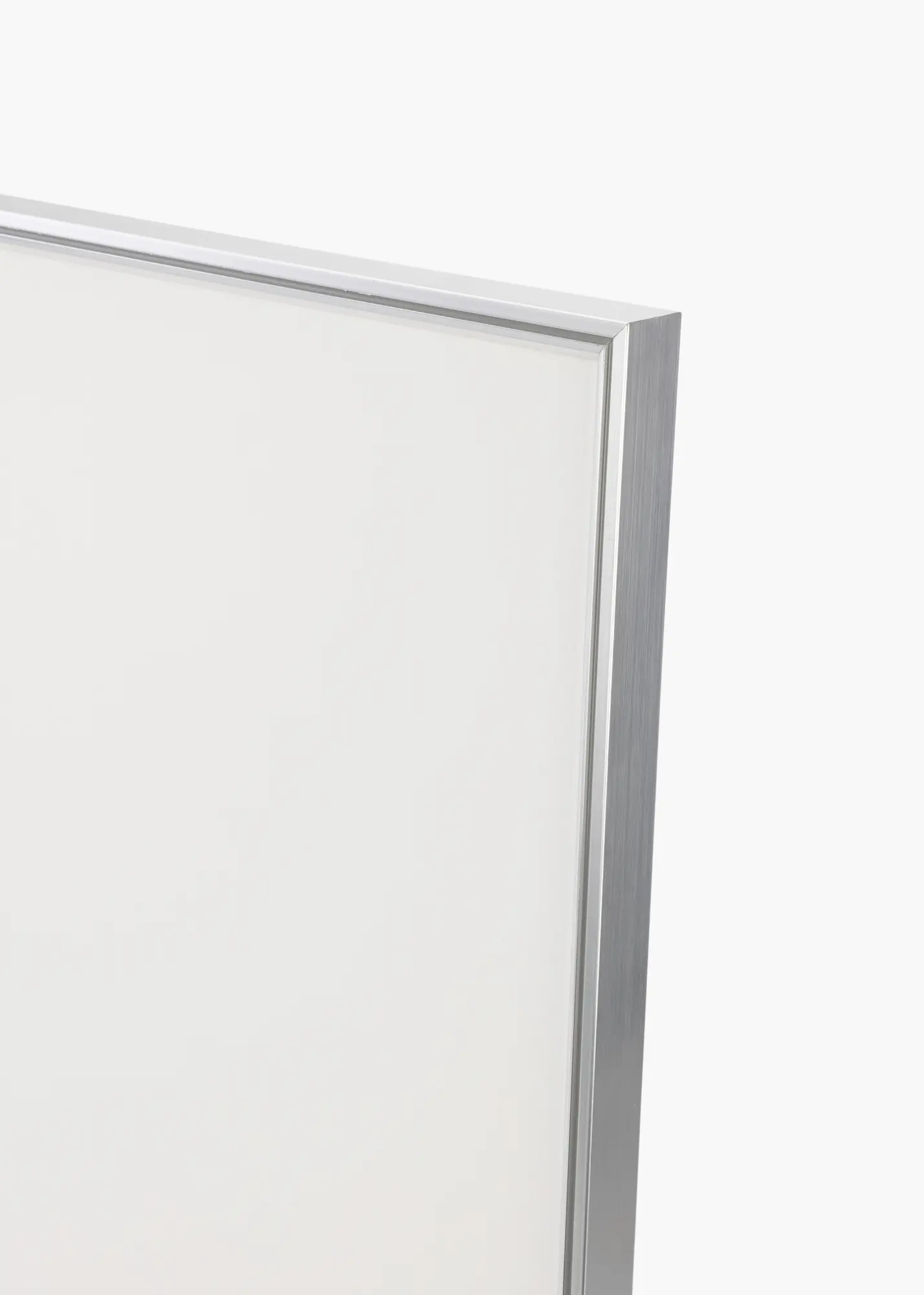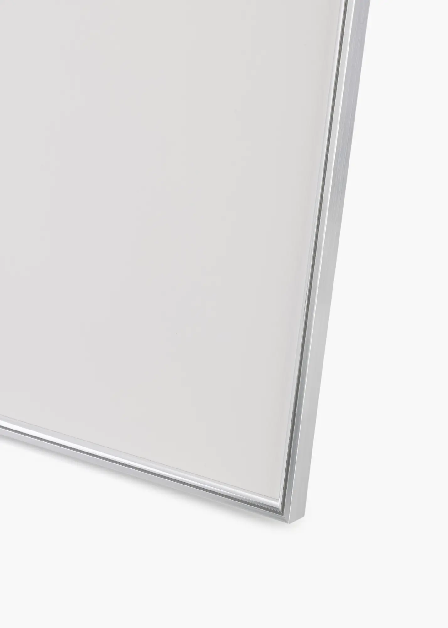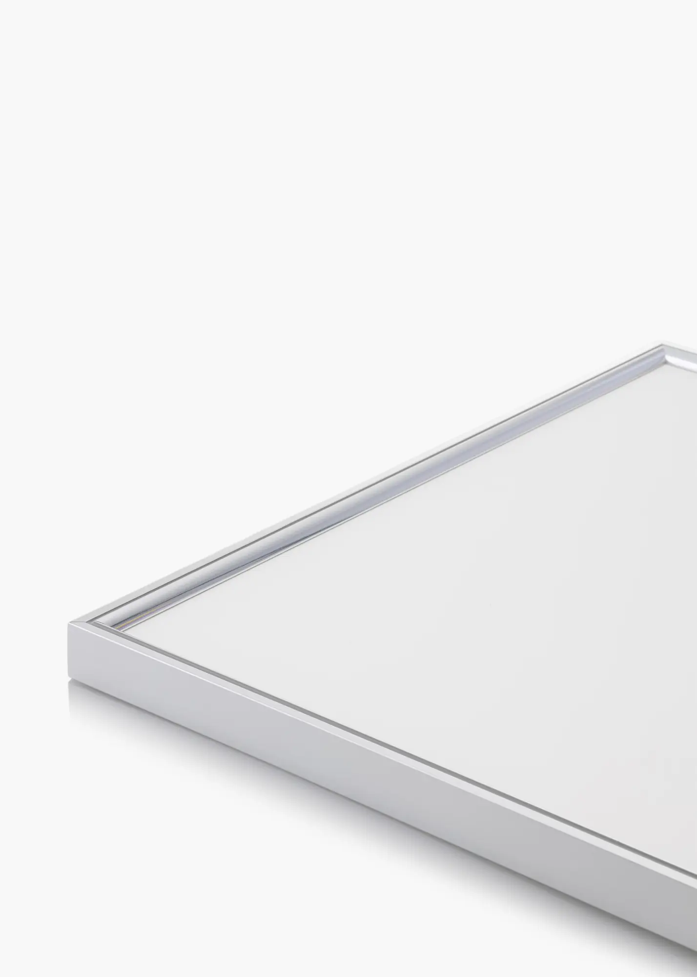 Detta är en trendig tavelram med en tunn list på 9 mm och en lätt rundad profil. Ramens läckra silverfärg och listens djup på 18,3 mm sätter en mycket modern ton. Den ger en utmärkt inramning till moderna motiv, som abstrakta posters och citat, men passar även till klassiska fotografier.