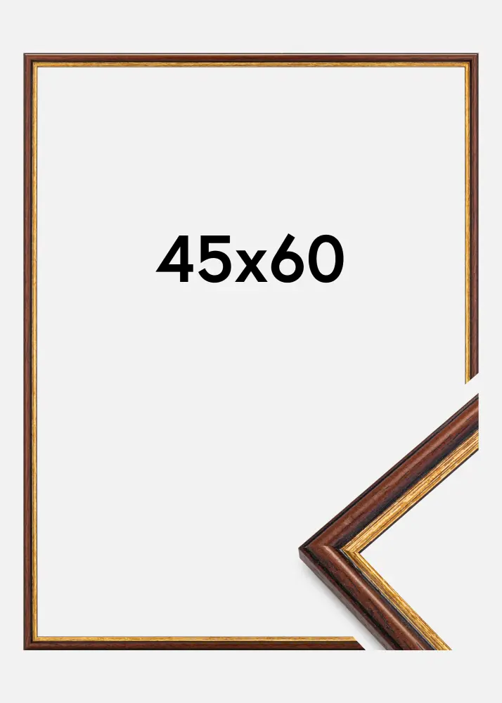 Upptäck elegansen och den tidlösa designen med vår 45x60 cm stora tavelram, som utstrålar en klassisk charm med sin bruna färg och subtila guldkant. Denna fotoram är det perfekta valet för att framhäva dina värdefulla minnen eller konstverk med en touch av traditionell estetik.