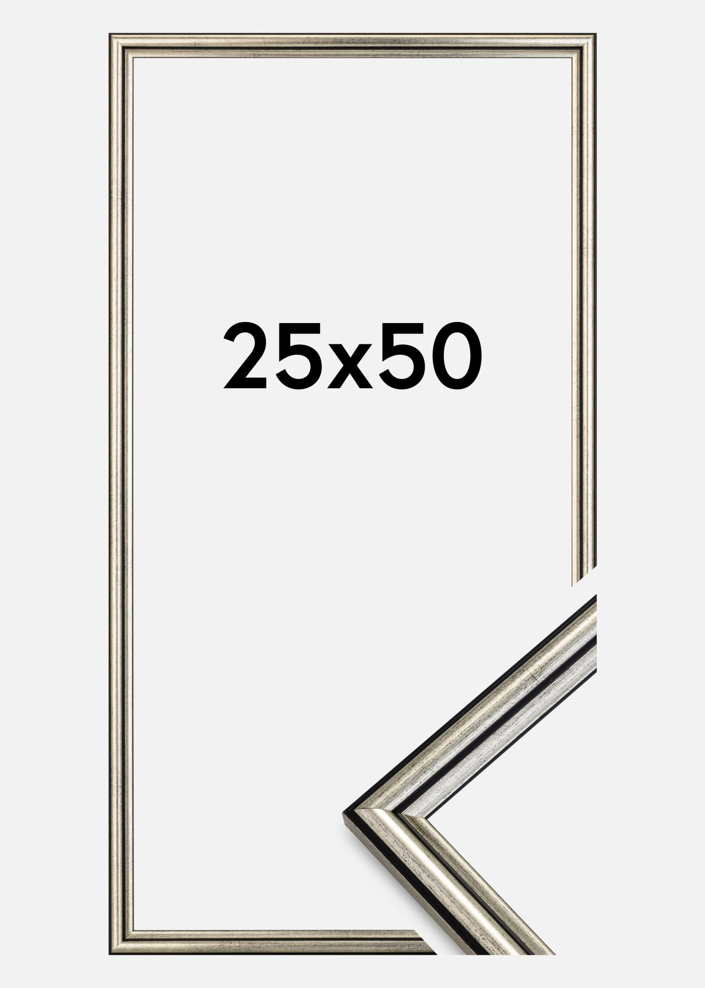 Upptäck elegansen och den sofistikerade designen med vår silverram i storleken 25x50 cm. Denna fotoram är en stilren detalj för ditt hem, med sina subtila svartspräckliga inslag och svarta linjer som tillför en unik karaktär till din väggdekoration.