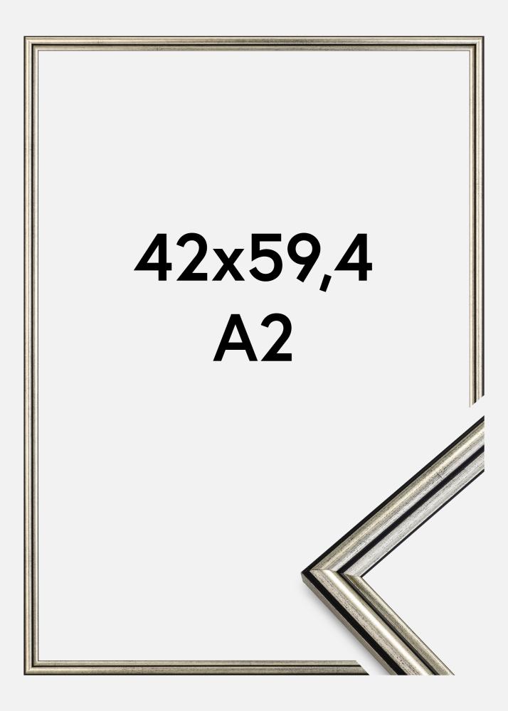 Upptäck elegansen och den moderna designen med vår 42x59,4 cm (A2) silverram, perfekt för att framhäva dina favoritkonstverk eller fotografier. Denna fotoram är en stilfull detalj i varje rum med sina subtila svartspräckliga inslag och dekorativa svarta linjer som ger ett unikt djup och karaktär.