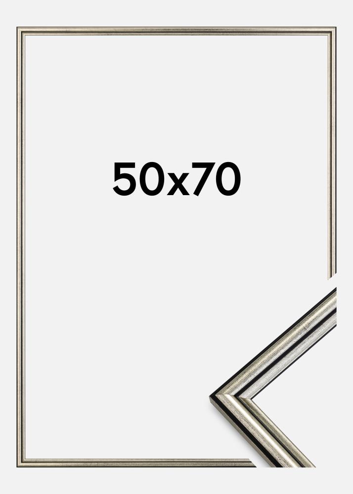 Upptäck elegansen och den sofistikerade designen med vår 50x70 cm silverram, perfekt för att framhäva dina favoritkonstverk eller fotografier. Denna fotoram är en stilfull detalj i varje rum, med sina subtila svartspräckliga inslag och svarta linjer som ger en unik karaktär.